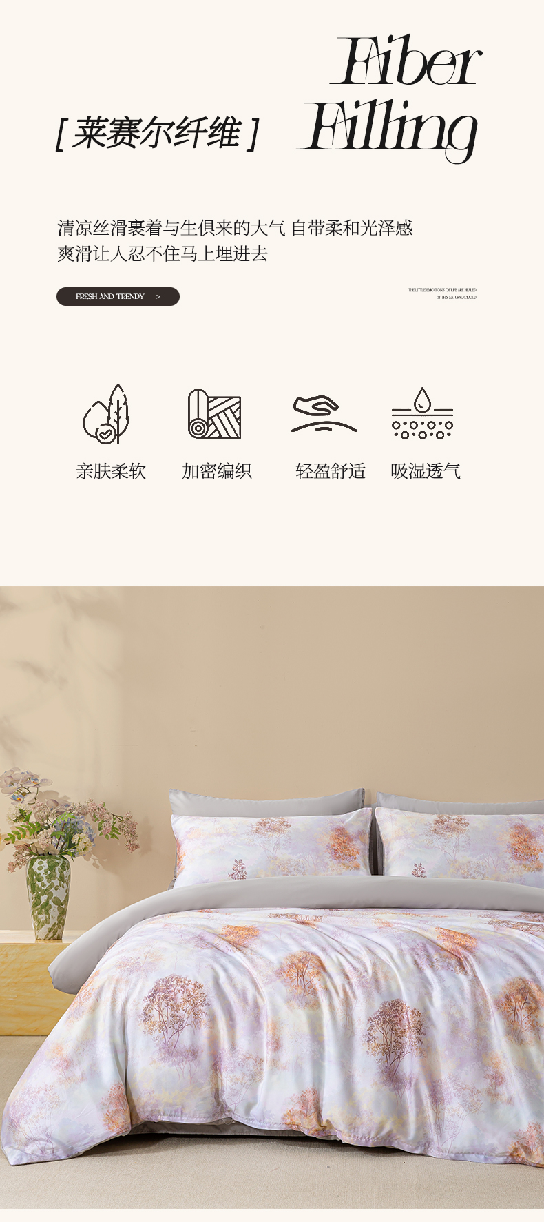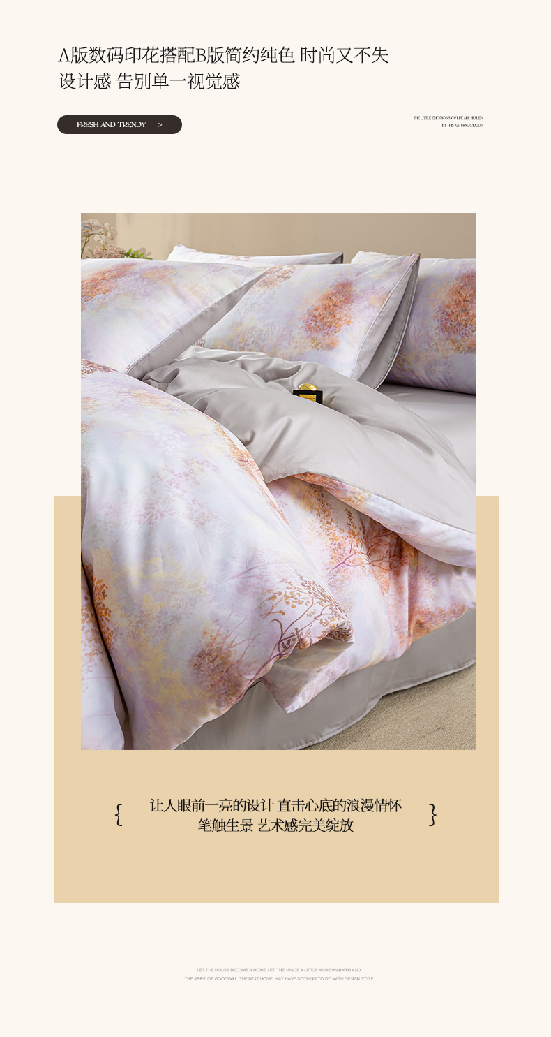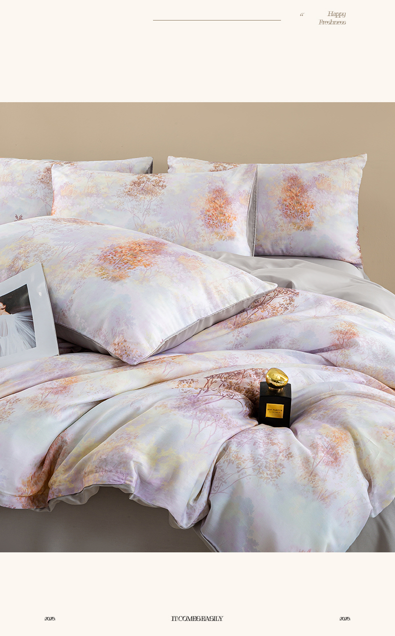 麦田家纺 2025新款50S莱赛尔天丝印花四件套 幸福里