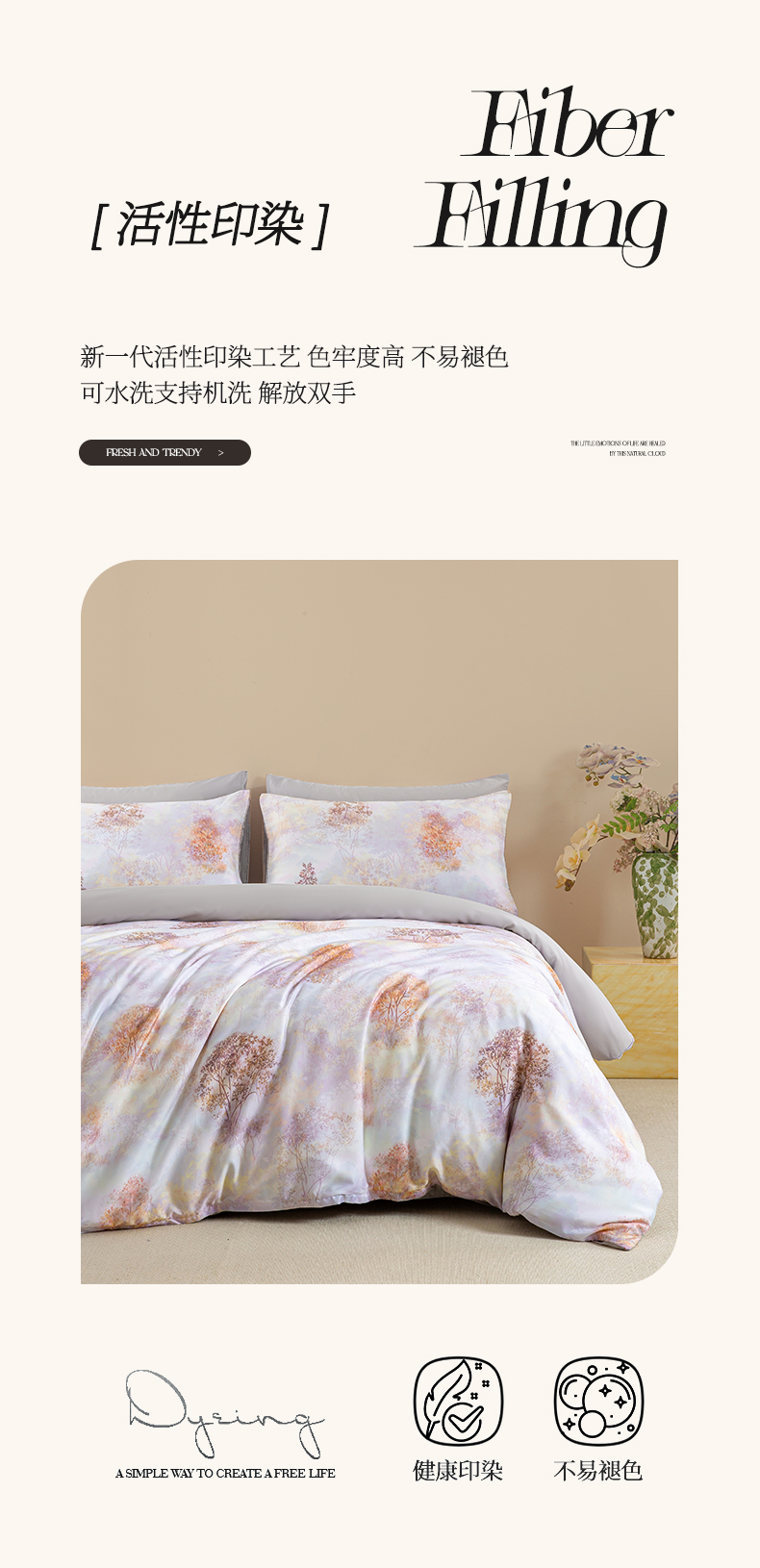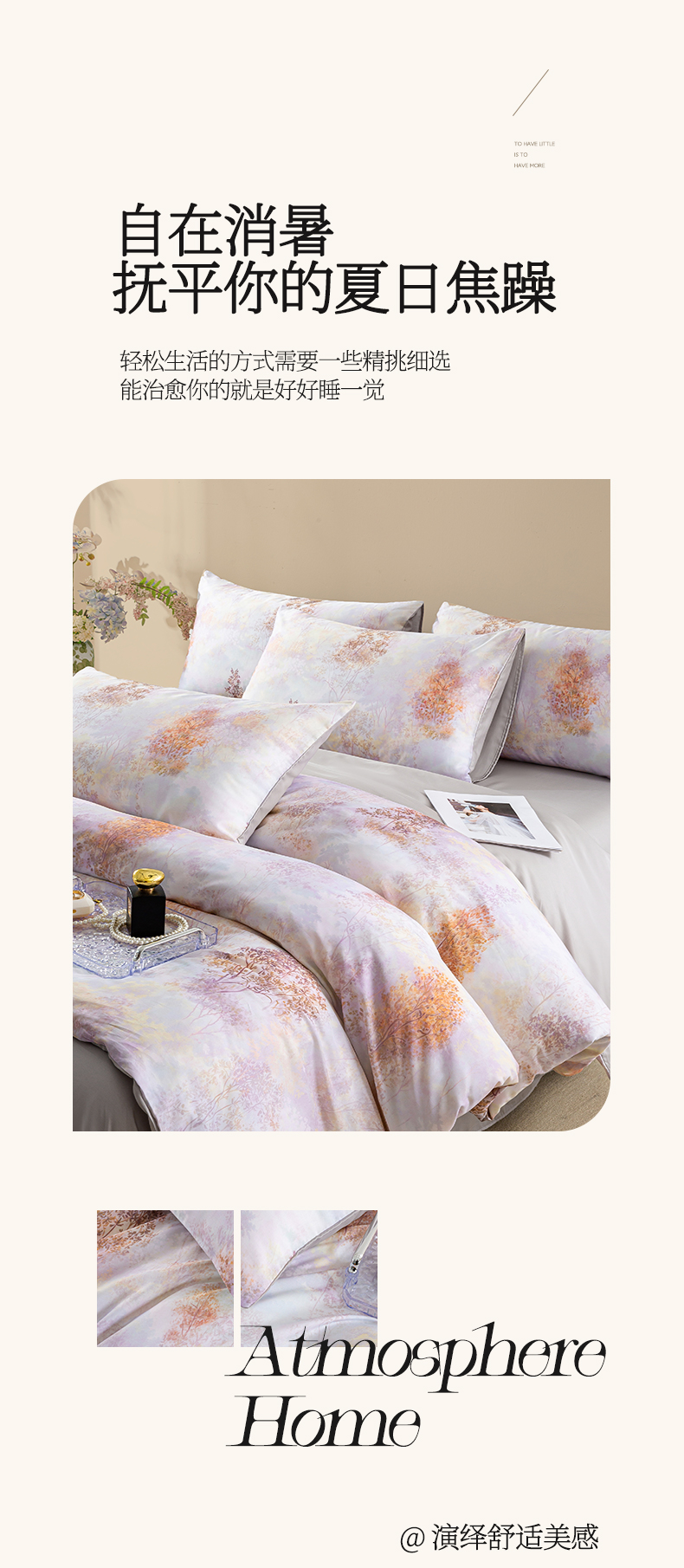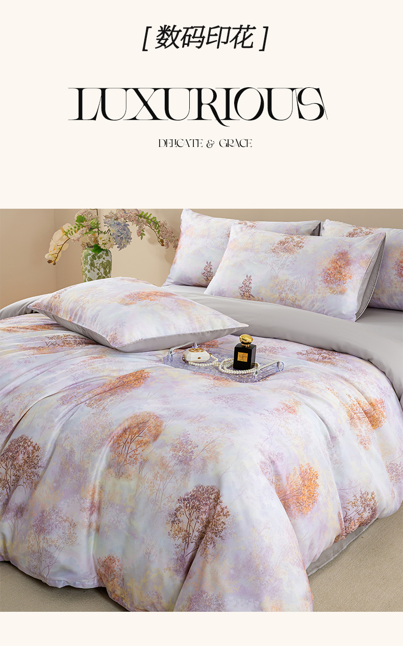 麦田家纺 2025新款50S莱赛尔天丝印花四件套 幸福里