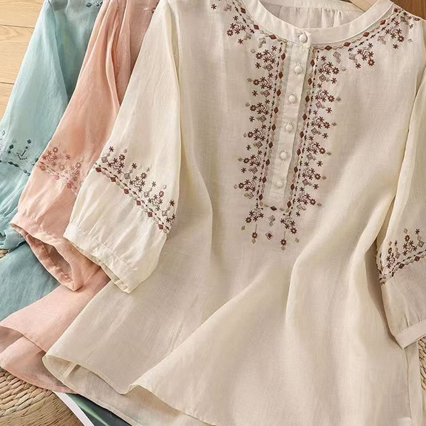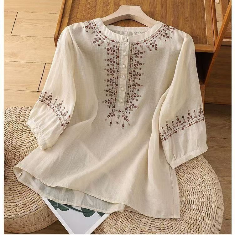 当前位置: 91家纺网 > 商品网购 > 居家日用 > 睡衣/家居服套装 > (总)洛兰沙家居馆【只代发】【只代发】 2025新款国风绣花苎麻衬衫女斜襟盘扣立领唐装小衫气质棉麻套头上衣