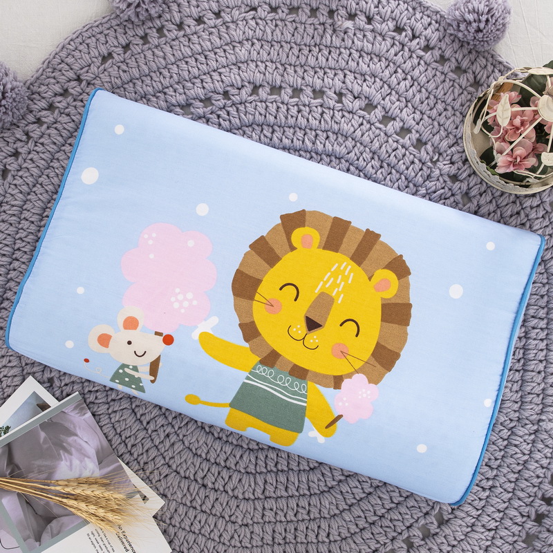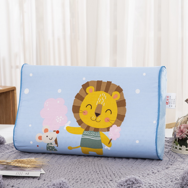 大黄蜂家居家纺 2025新款全棉13372棉儿童卡通乳胶枕套 开心狮子