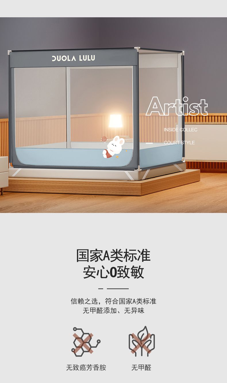 当前位置: 91家纺网 > 商品网购 > 床上用品 > 蚊帐 > 坐床式蚊帐 > 佳梦家纺 2025新款lulu烫画款坐床蚊帐 LULU-景泰蓝