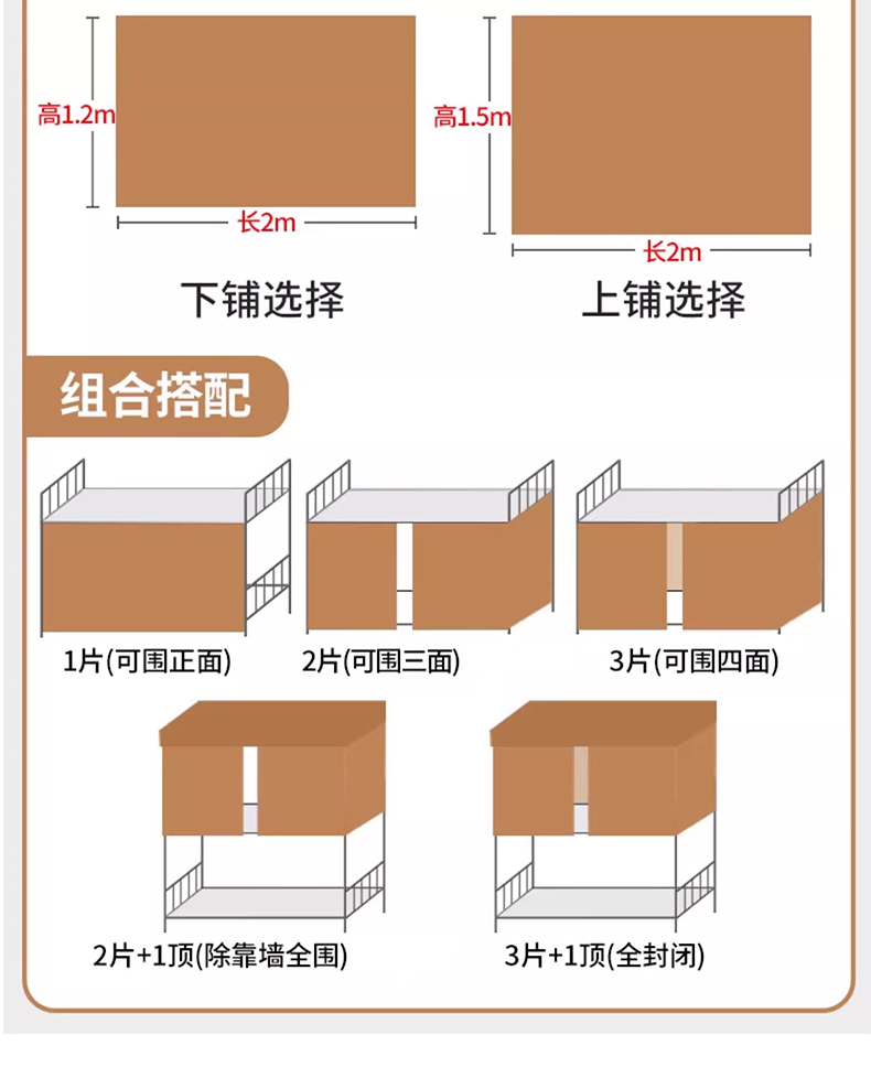 120x200cm下铺【2片】围三面