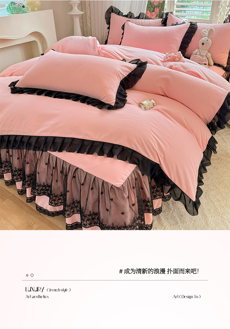 (总)唐人居 2026新款水洗棉花边床盖四件套-花影系列,花影-浅紫,花影-豆沙,花影-玫红,花影-暖橘,花影-苹果绿,花影-浅粉,花影-浅灰