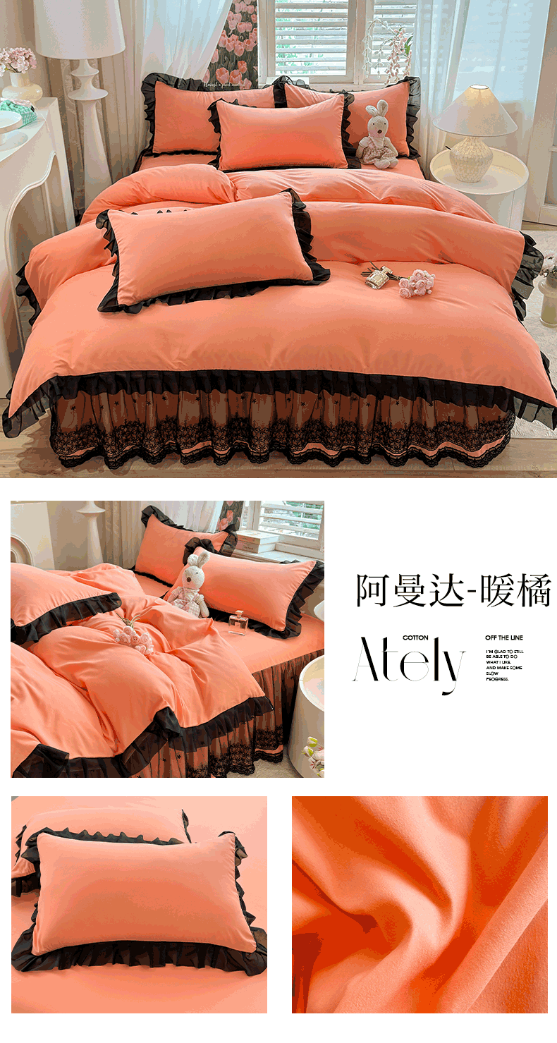商品名称:唐人居 2025新款韩式花边亲肤四件套--相遇系列 相遇-暖橘