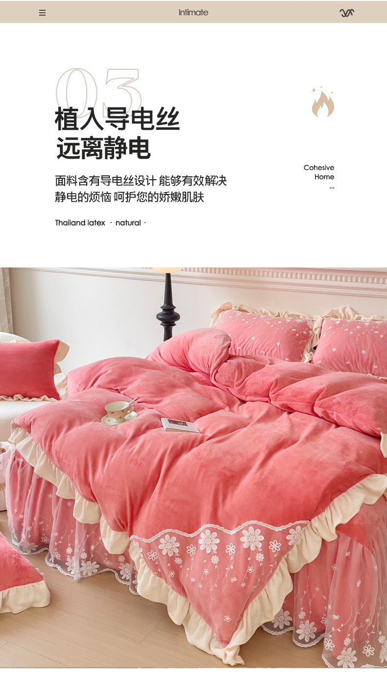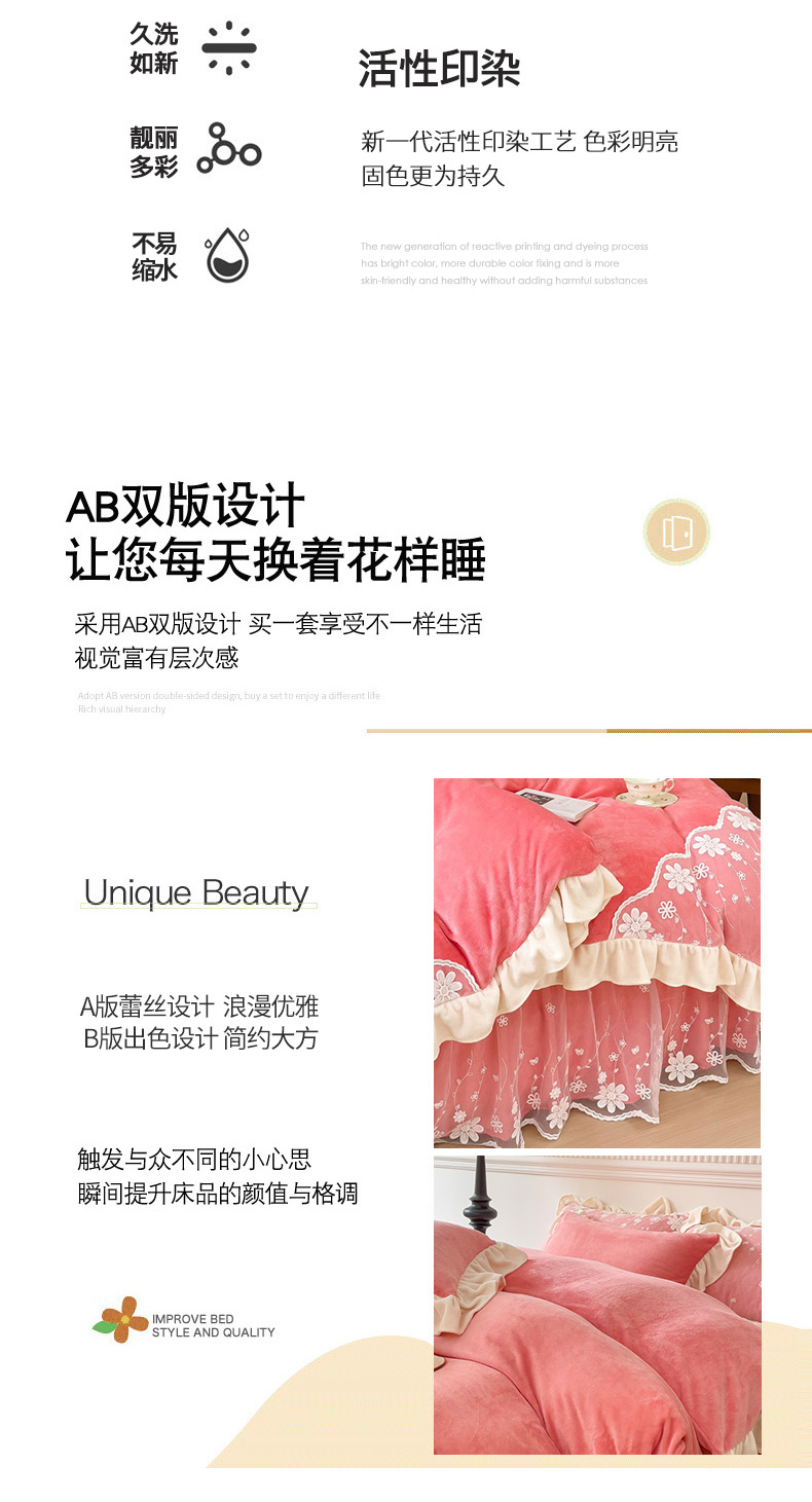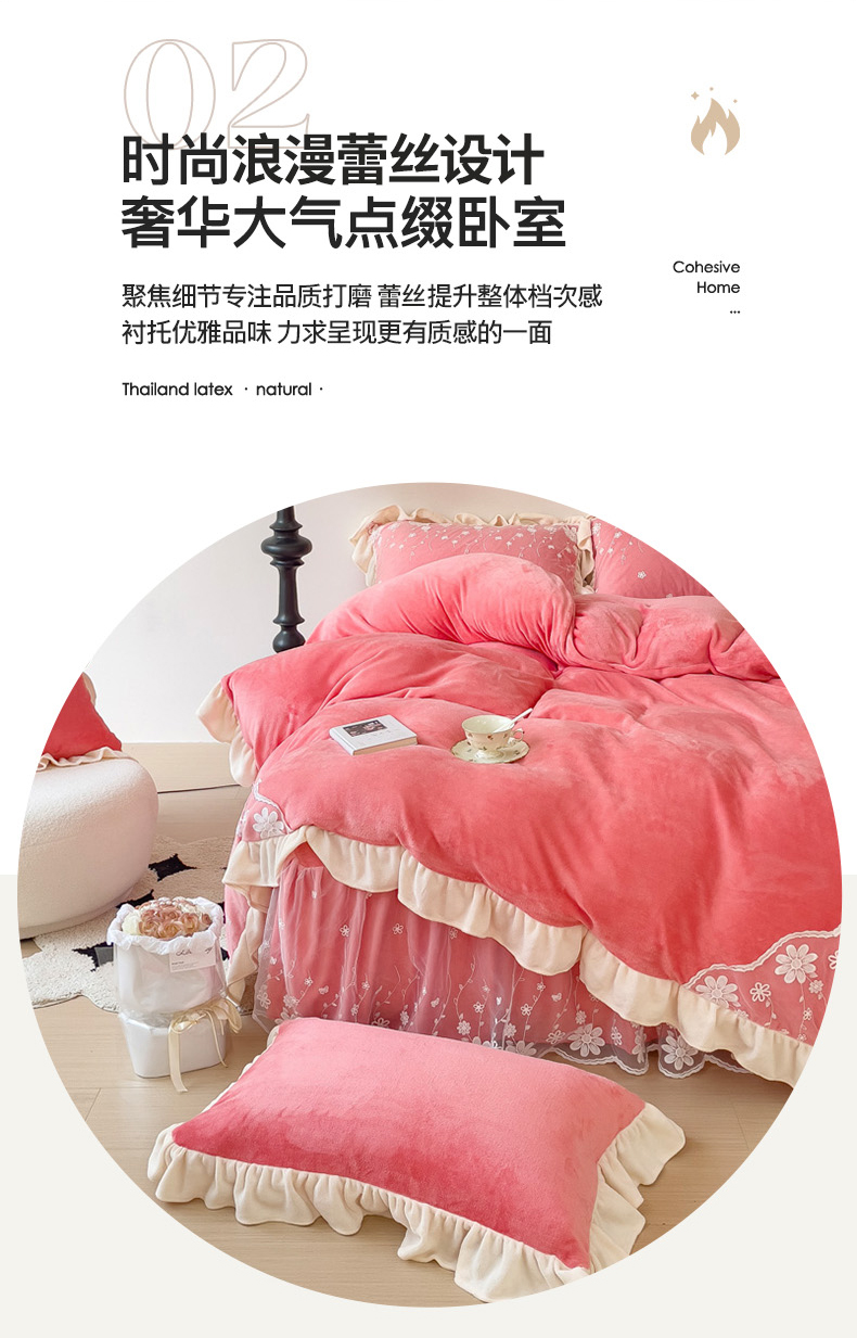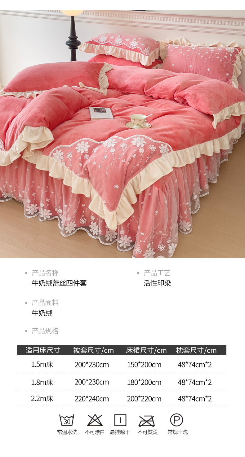 商品名称:睡美人 2025新款牛奶绒蕾丝款床裙四件套花仙子系列 花仙子-石榴红