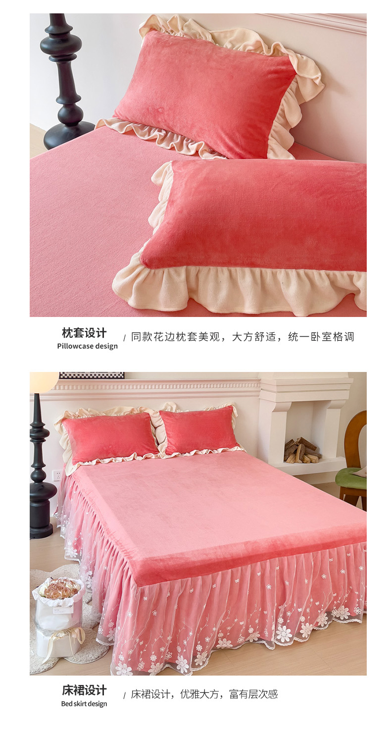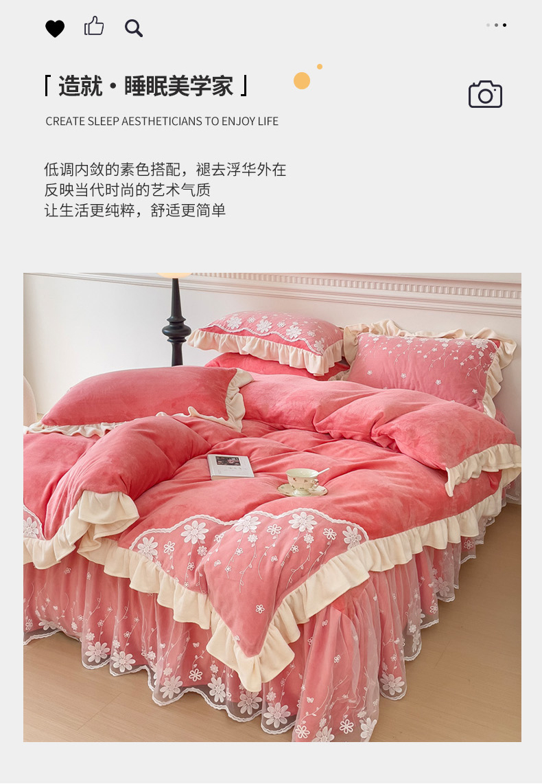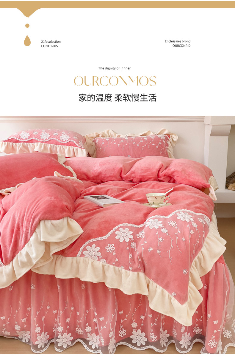 睡美人 2025新款牛奶绒蕾丝款床裙四件套花仙子系列 花仙子-石榴红