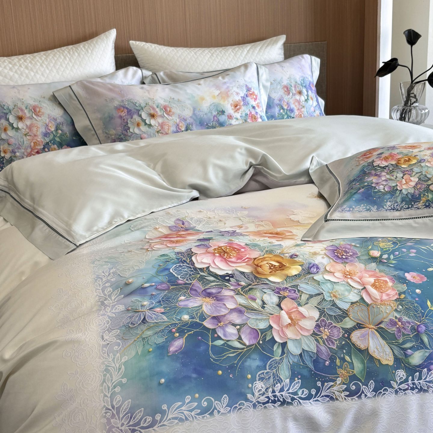 (总)佳汐蓝家纺 2025新款100支全棉贡缎数码印花四件套-画蝶,画蝶