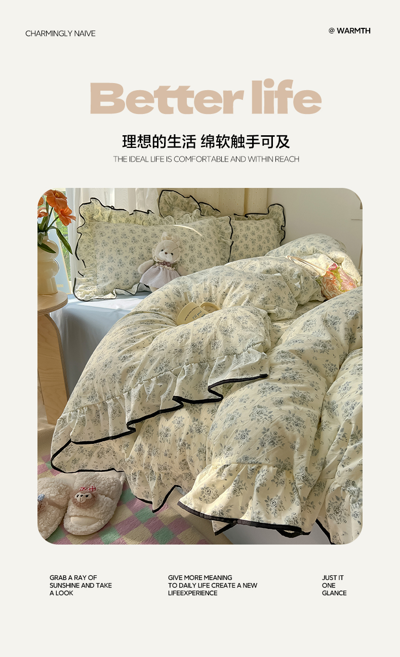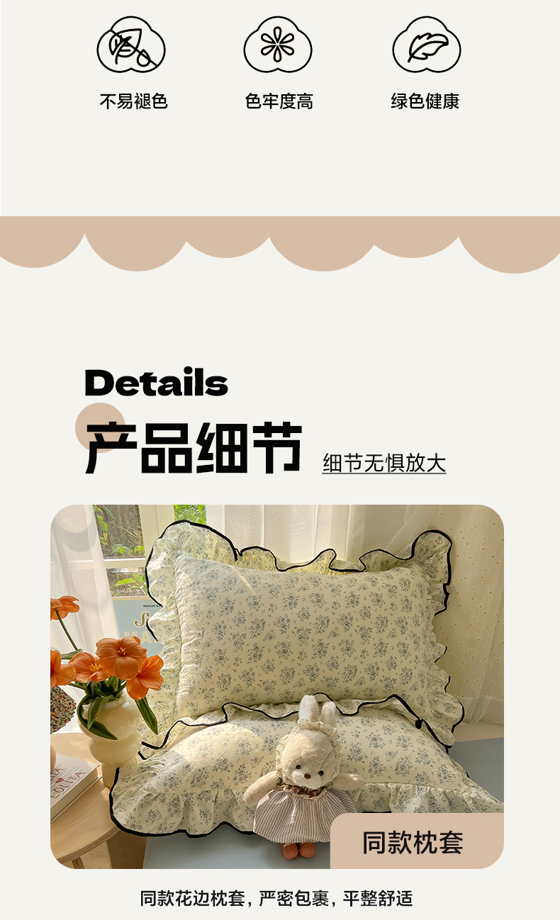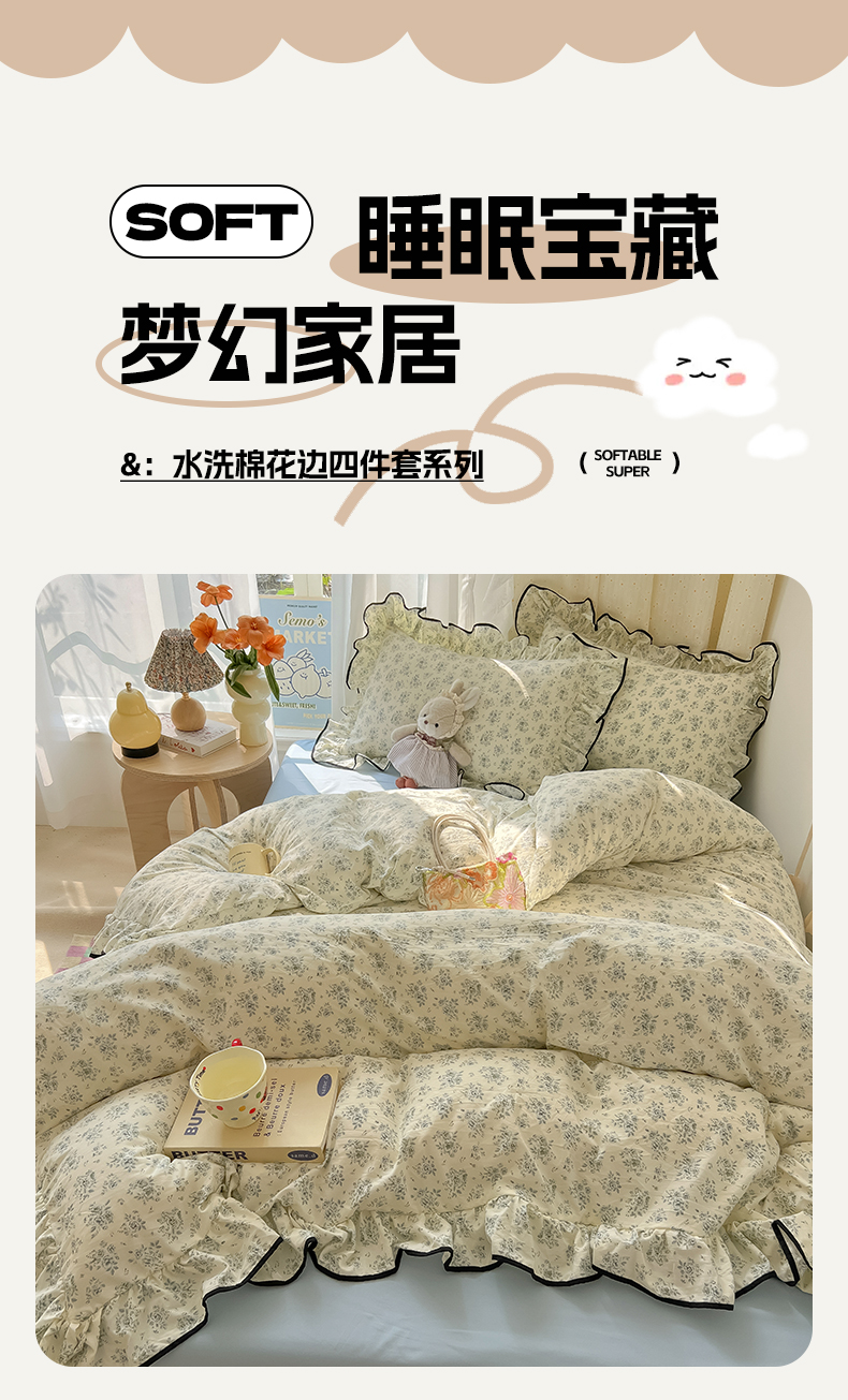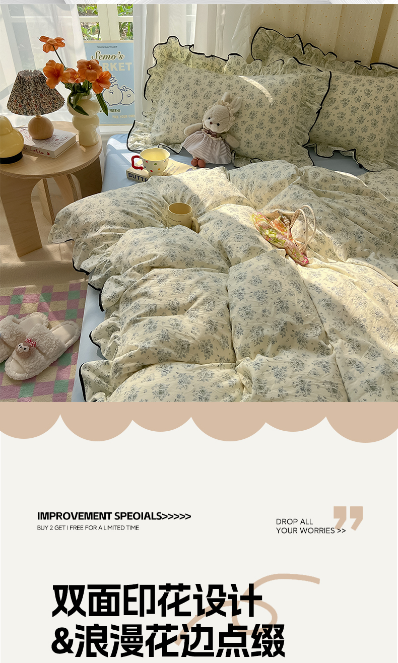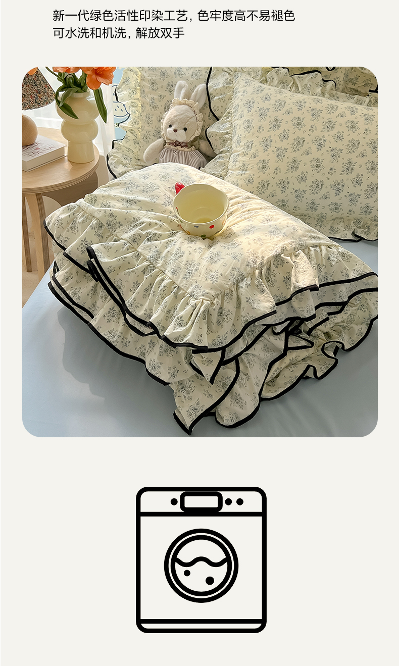 当前位置: 91家纺网 > 商品网购 > 床品套件 > 四件套 > 其它四件套 > 韩巢家纺 2025新款水洗棉大花边被套四件套直播热销款学生宿舍被罩床单三件套(提供卖家秀) 春日与玫瑰【大花边款】