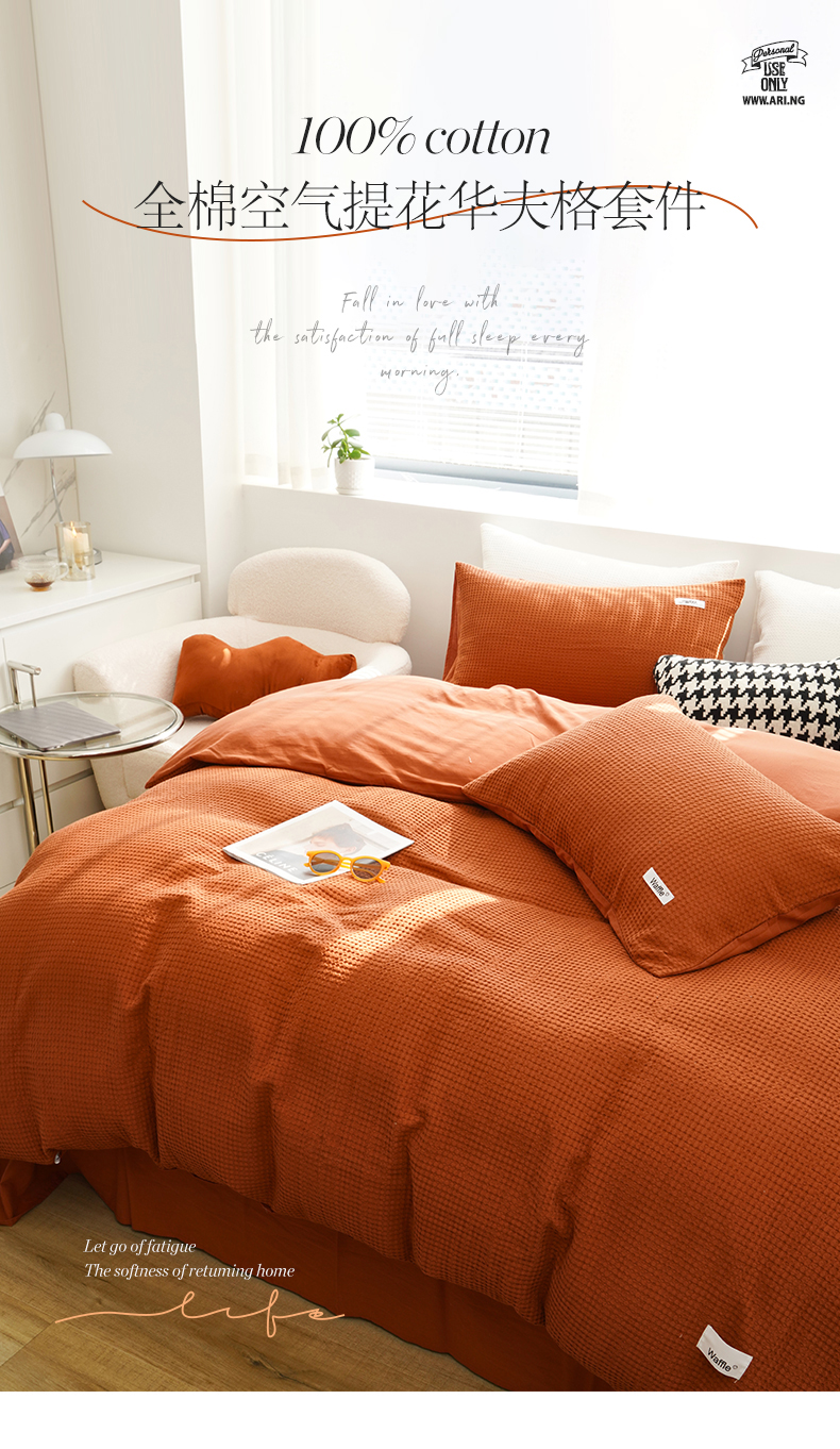 当前位置: 91家纺网 > 商品网购 > 床品套件 > 四件套 > 全棉普通四件套 > 贝尔 PELLHOME 小红书民宿全棉空气提花华夫格四件套纯棉水洗棉小众(可抖音代发) 蔚蓝青普
