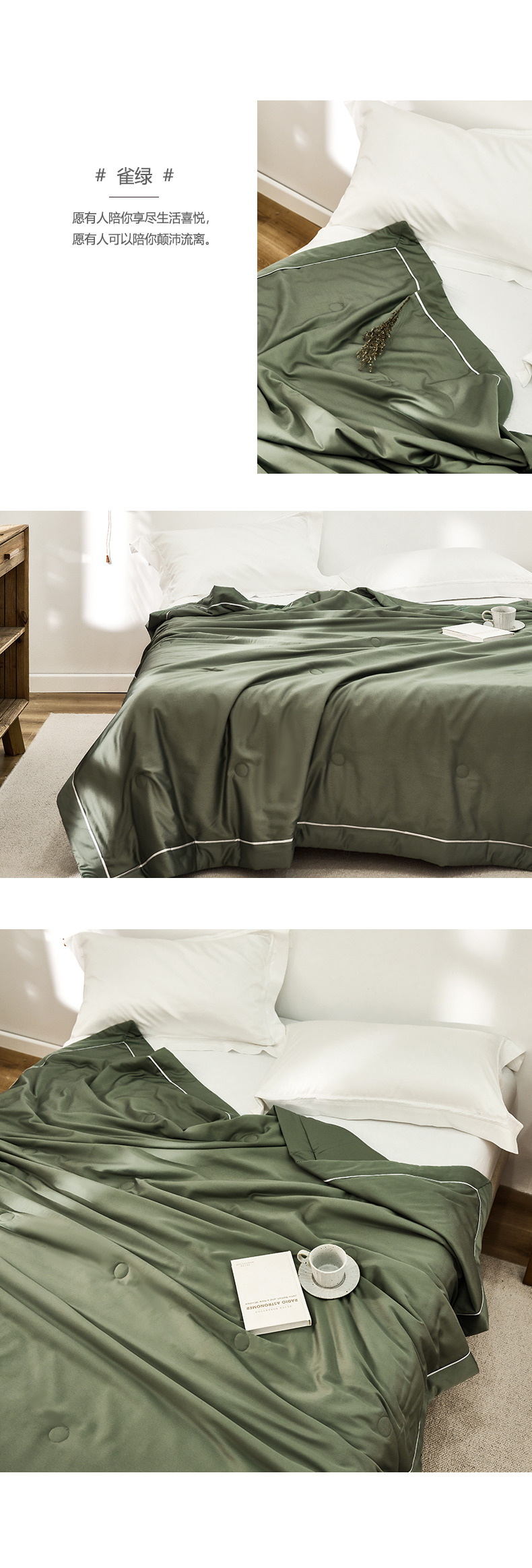 • 91家纺网 家纺一手货源 找家纺 贝尔 PELLHOME 60s兰精天丝纯色夏被夏凉被(可抖音代发) 雀绿