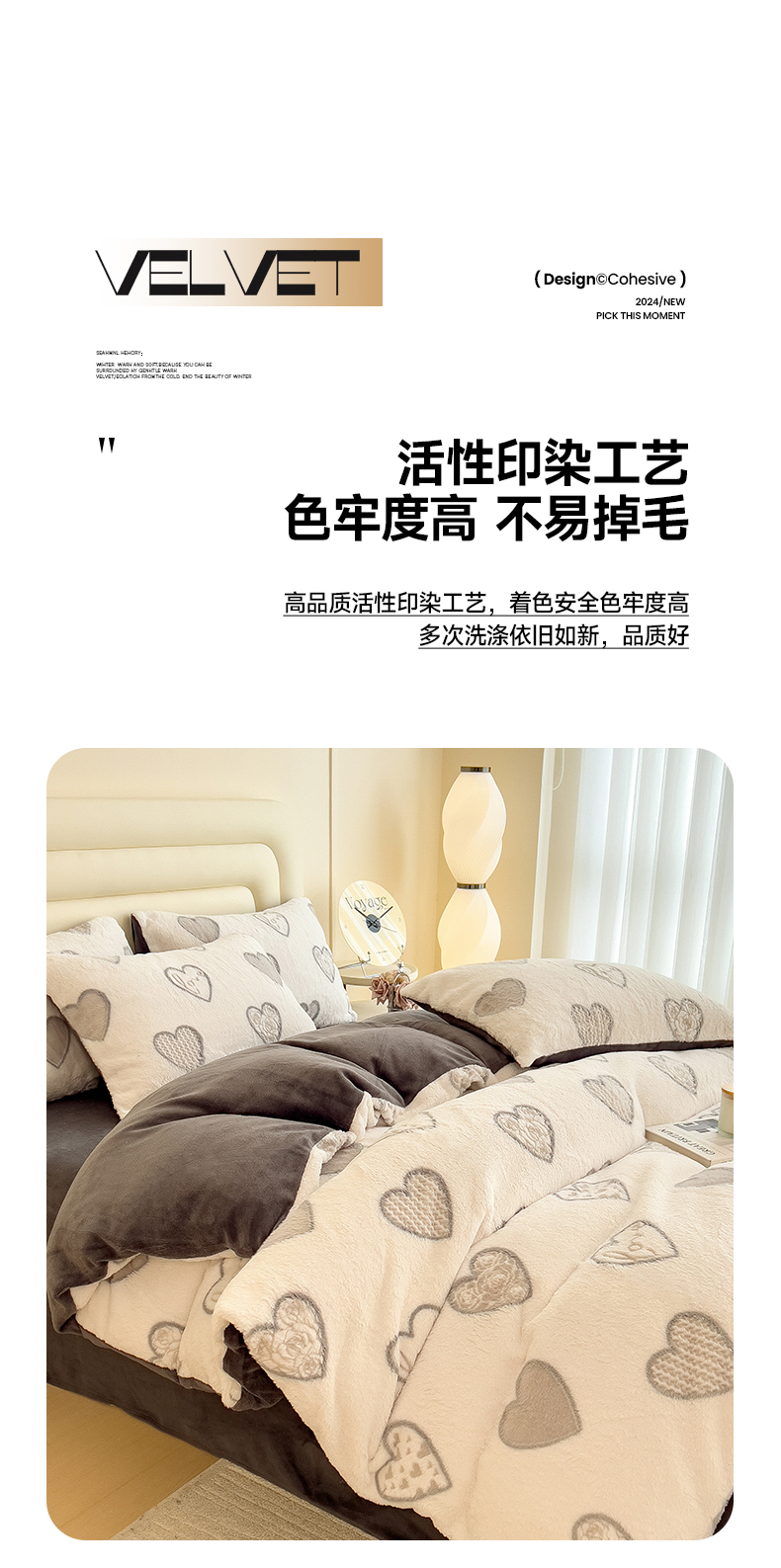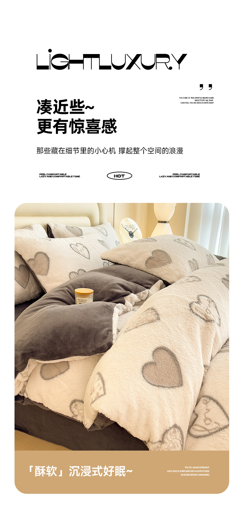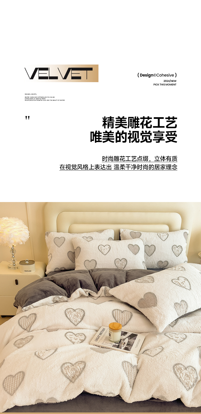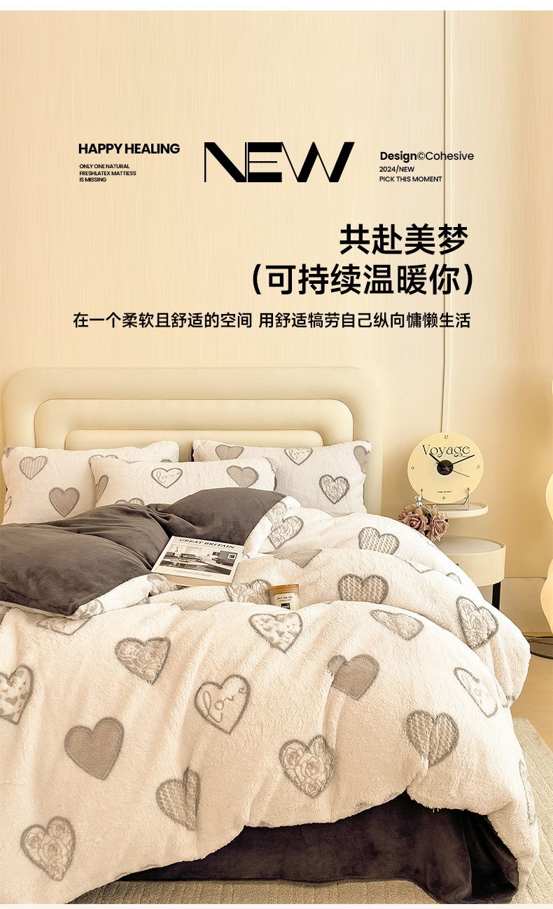 商品名称:摩妮卡 2025新款A类加厚兔毛雕花牛奶绒四件套 爱情爱心-灰