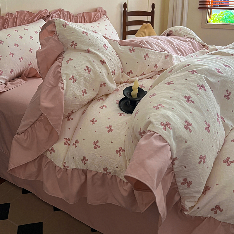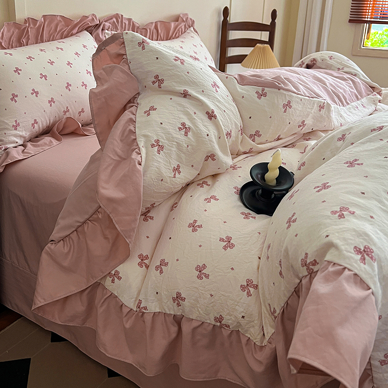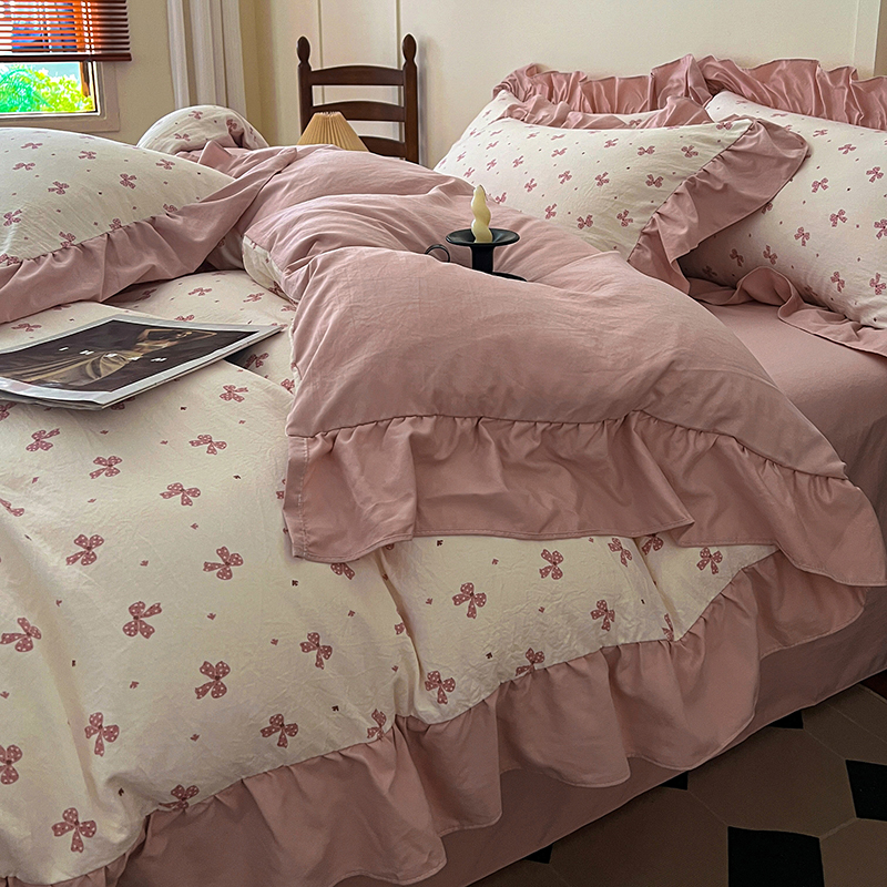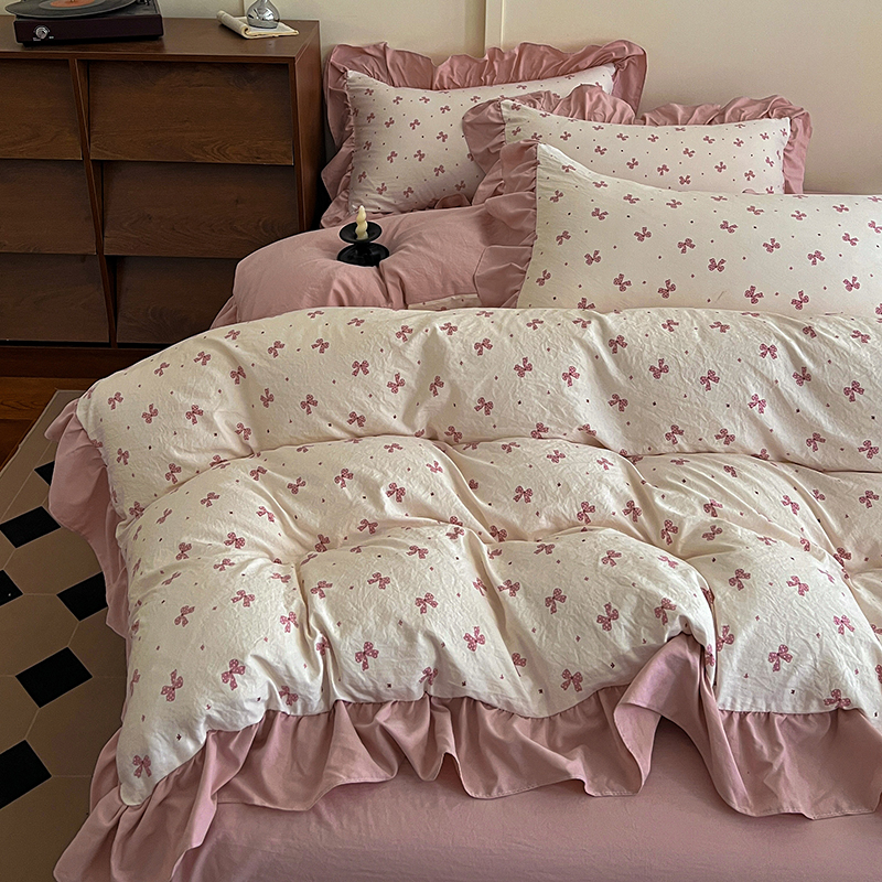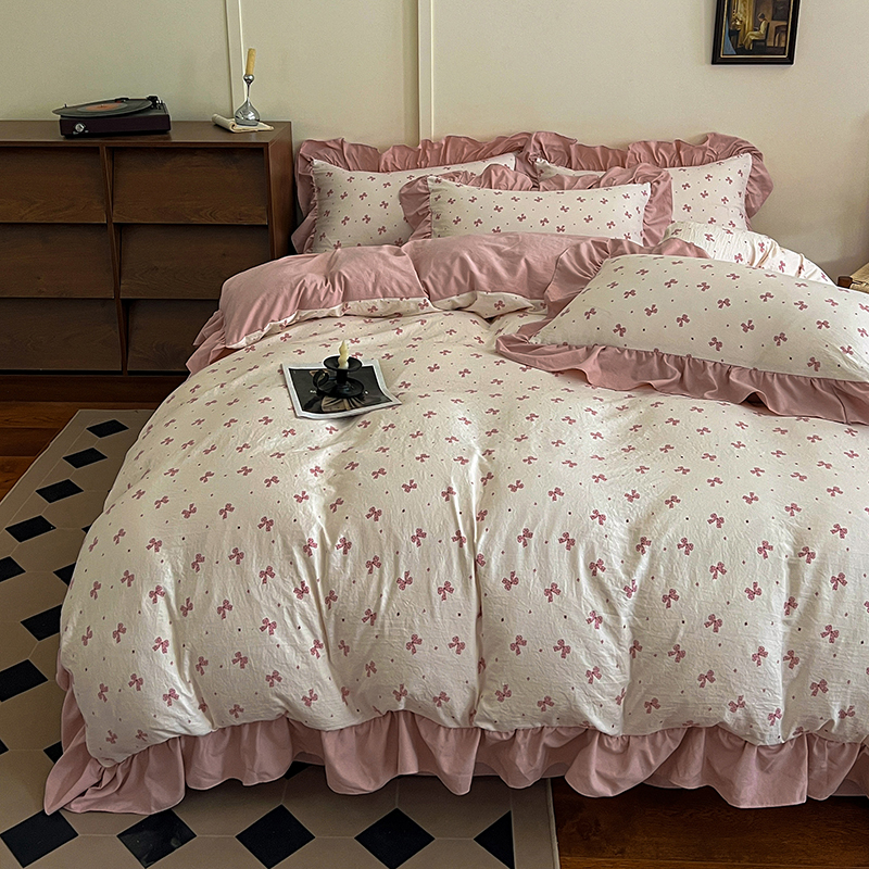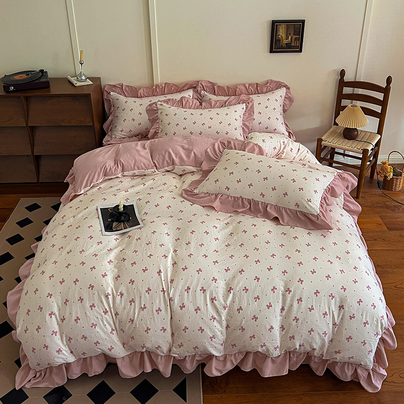(总)梦莱斯 2025新款云感木棉皱皱双层纱全棉花边四件套,百福蓝,春风里,薄荷微凉,春晓,豆蔻,蝴蝶梦,可颂,兰黛,山野栀子,素颜,太妃糖,心动,遇见,芝士奶酪,紫爱心,紫苏,花园兔,蜡笔画,小黑兔,白茶-绿,初恋,莱茵河畔,桃花诺