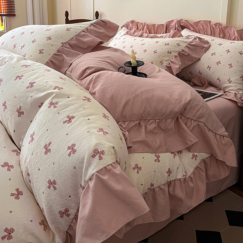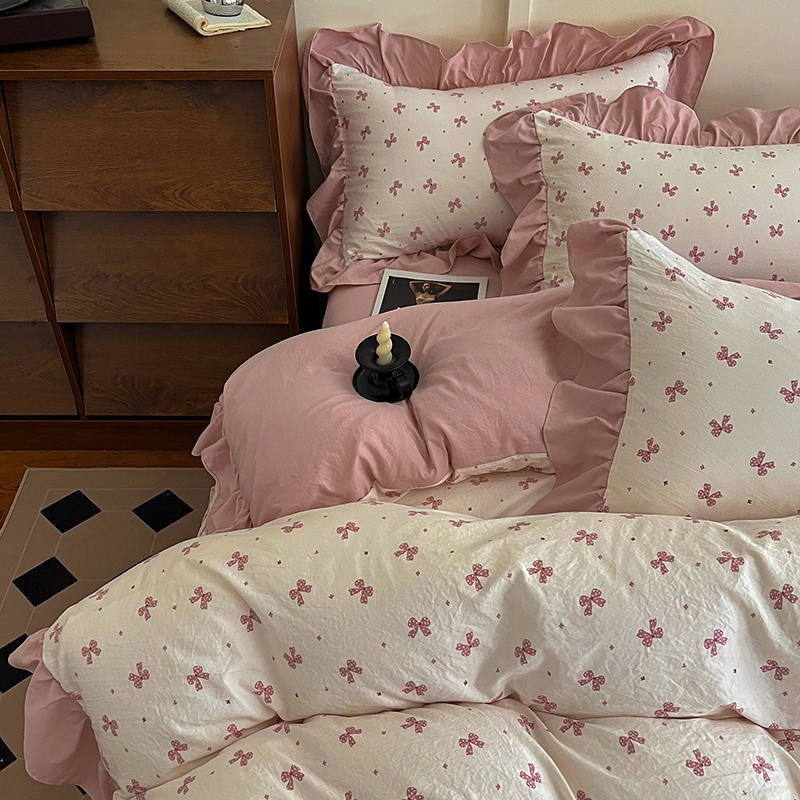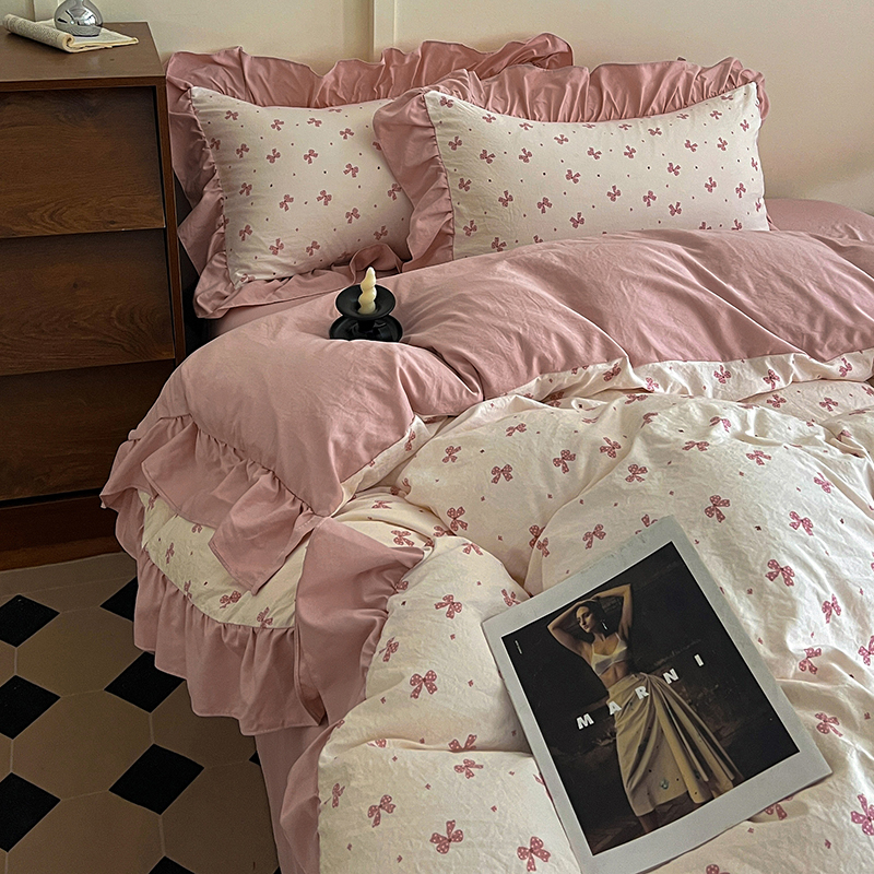 (总) 梦莱斯 2026新款小清新可爱风纯棉花边床盖四件套,灰格心,漫野,午后时光,小玫瑰,紫菱花笺,小象,屿花,浅棠絮语,彩色波点,彩色小草莓,粉蔷薇,杏野繁花,狗狗家族,蝴蝶结,可爱狗狗,可爱胡萝卜,蓝色狗狗,雾紫汀兰,蓝色梦铃,漫花蝶舞,米色南瓜,熊熊乐园,紫色小兔