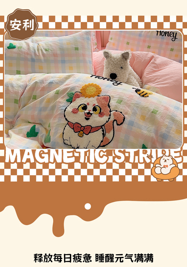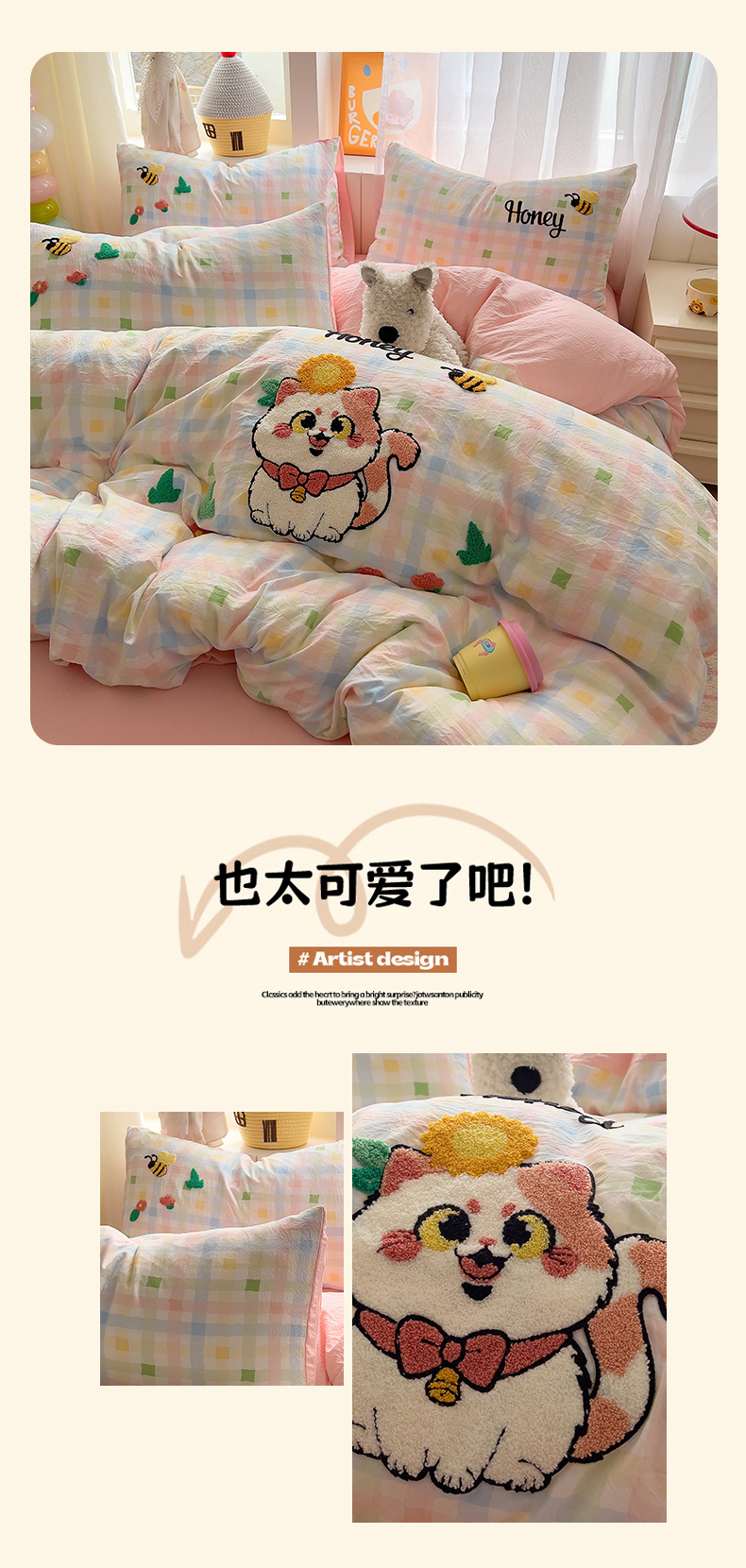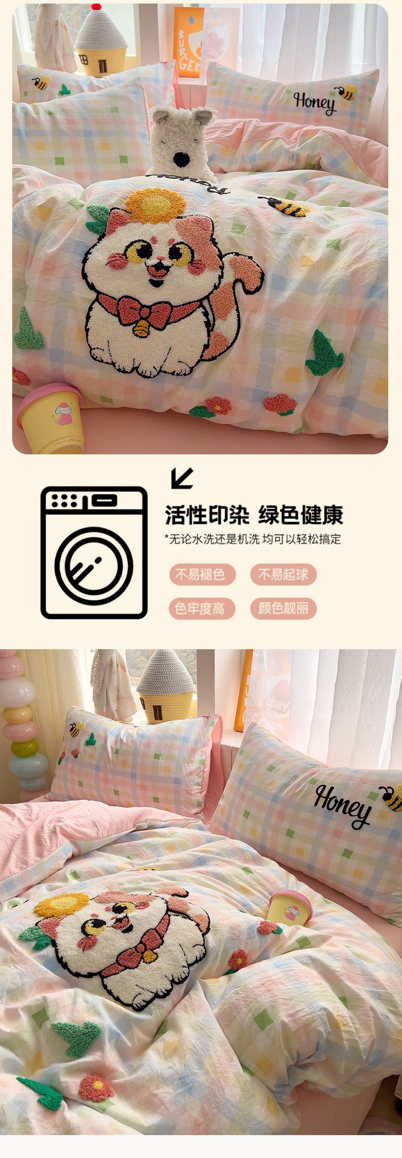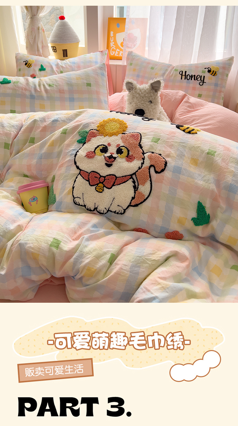 当前位置: 91家纺网 > 商品网购 > 床品套件 > 四件套 > 水洗棉四件套 > 易辰美 2025新款水洗棉毛巾绣卡通四件套 萌趣猫咪