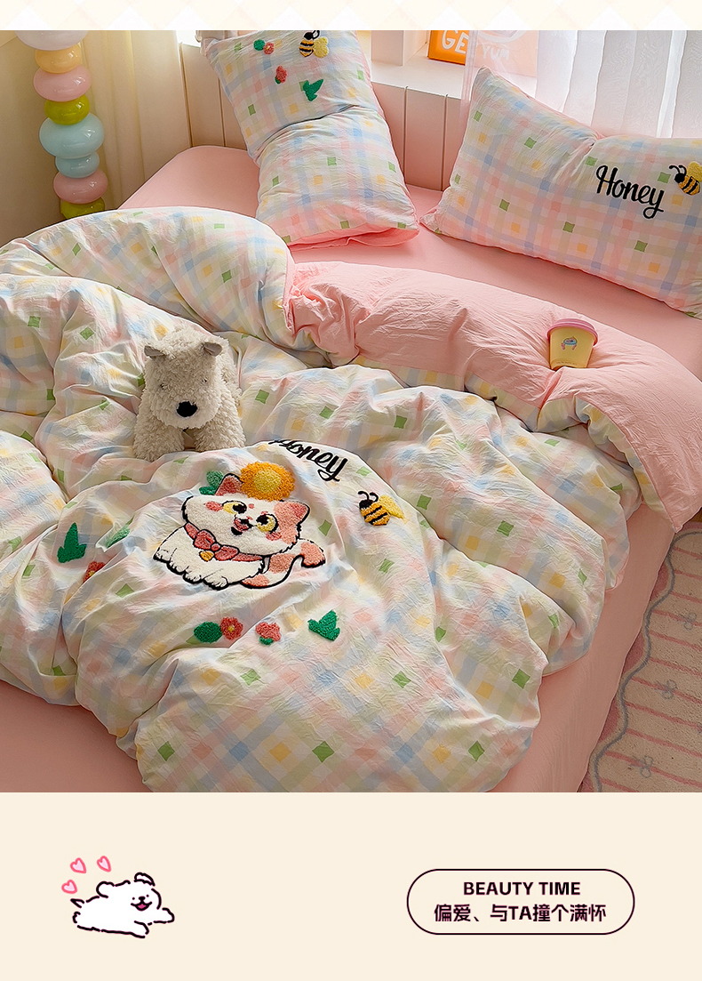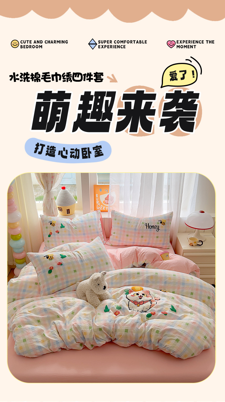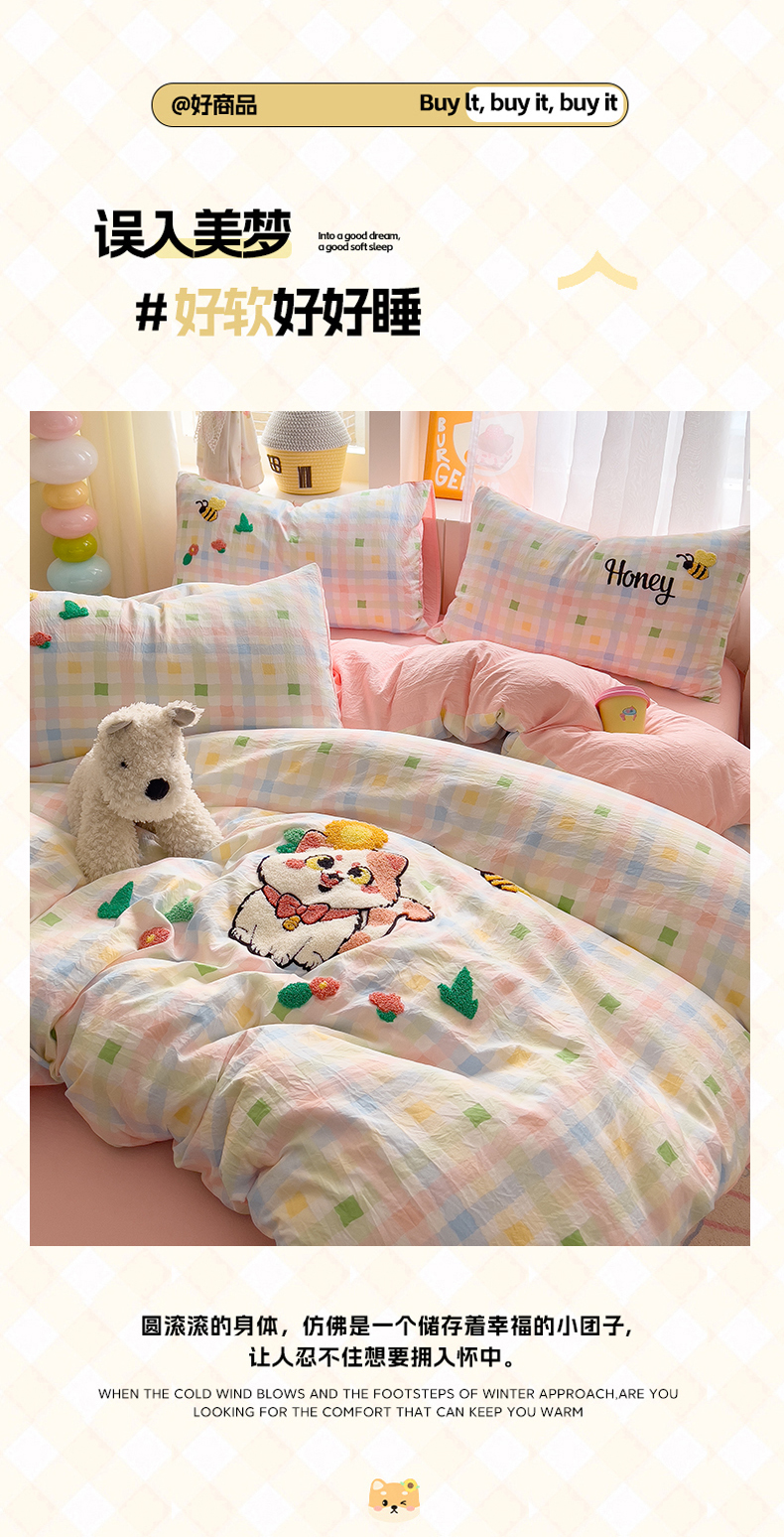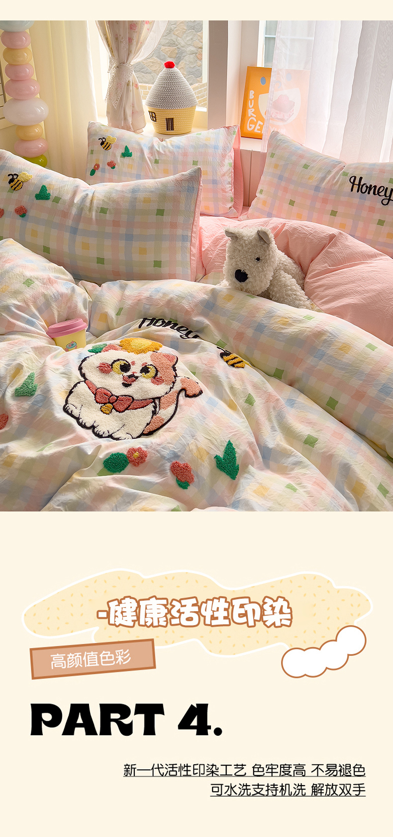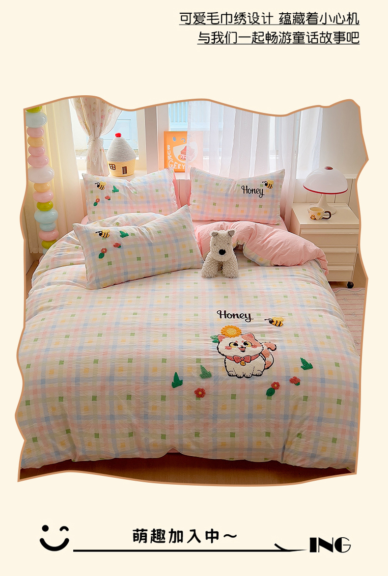 当前位置: 91家纺网 > 商品网购 > 床品套件 > 四件套 > 水洗棉四件套 > 易辰美 2025新款水洗棉毛巾绣卡通四件套 萌趣猫咪