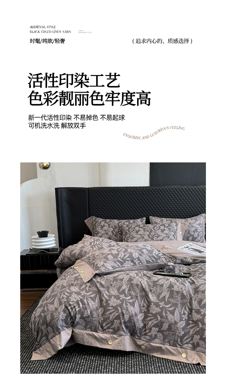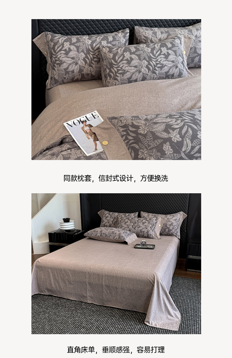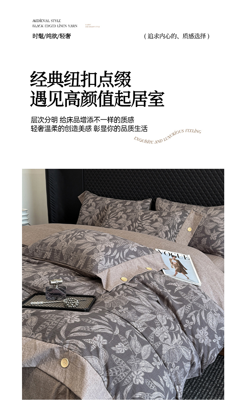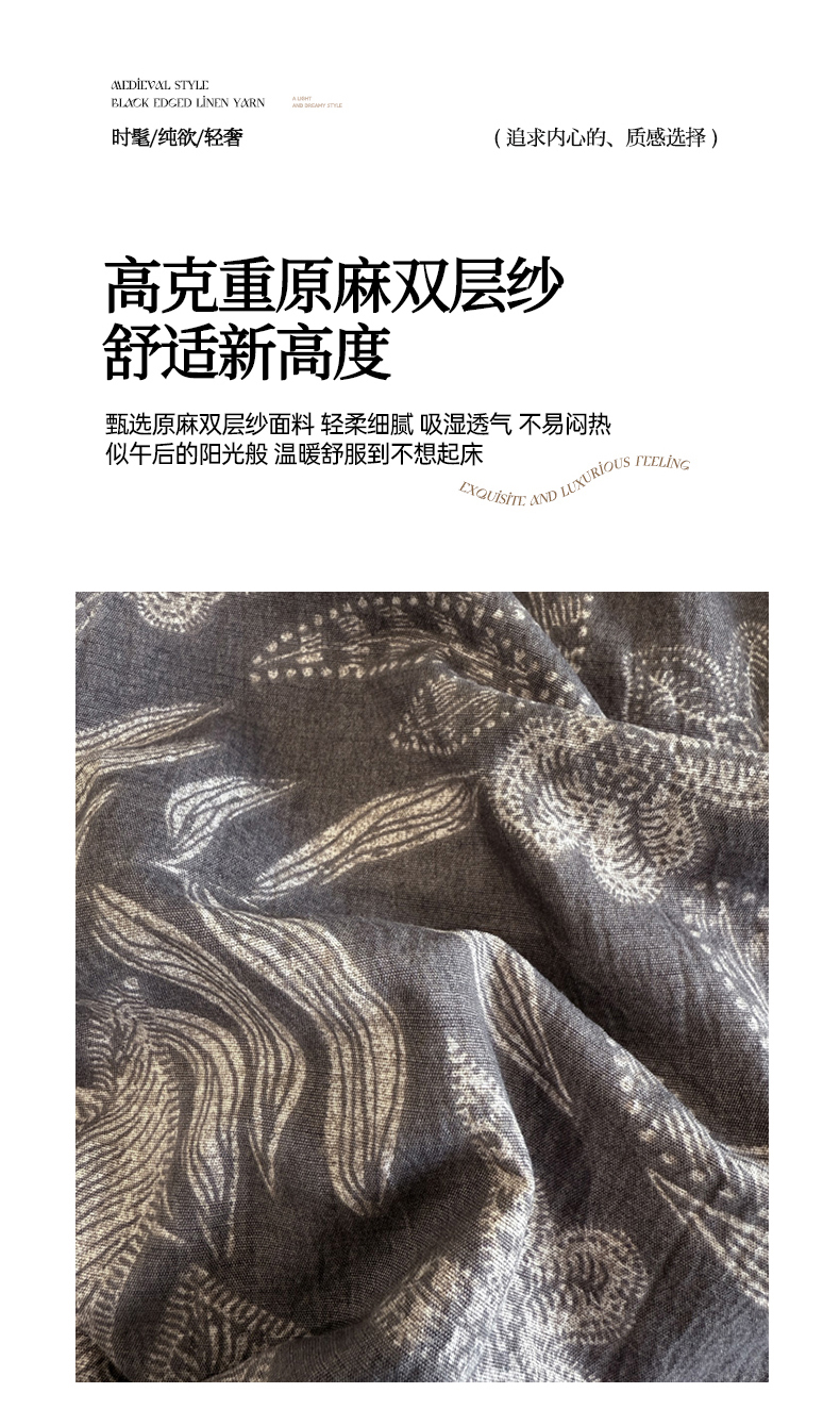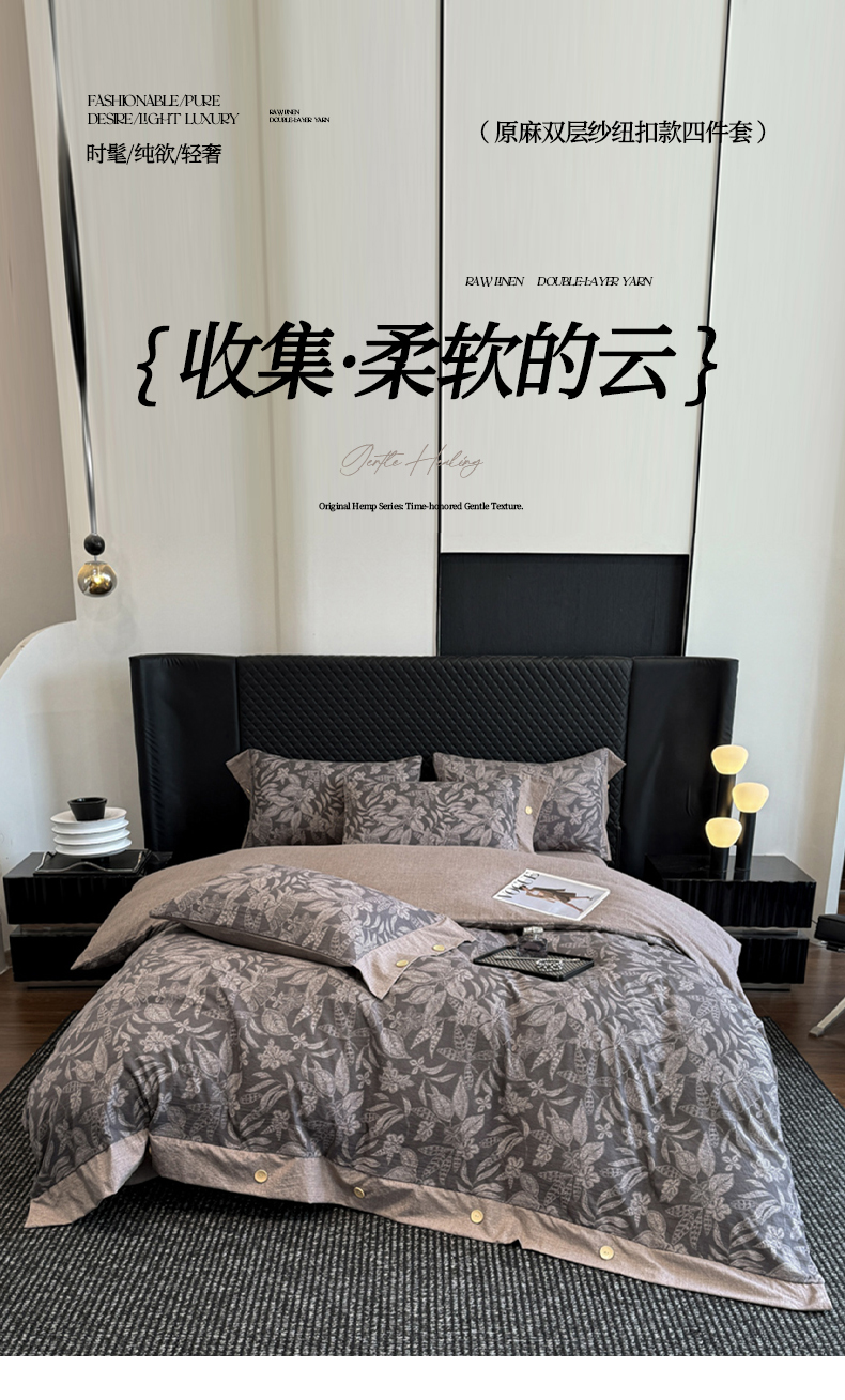 当前位置: 91家纺网 > 商品网购 > 床品套件 > 四件套 > 其它四件套 > 晚爱家纺(原晚安家居) 2025新款A类原麻四件套纽扣款加厚双层纱仿亚麻套件四件套 晚秋