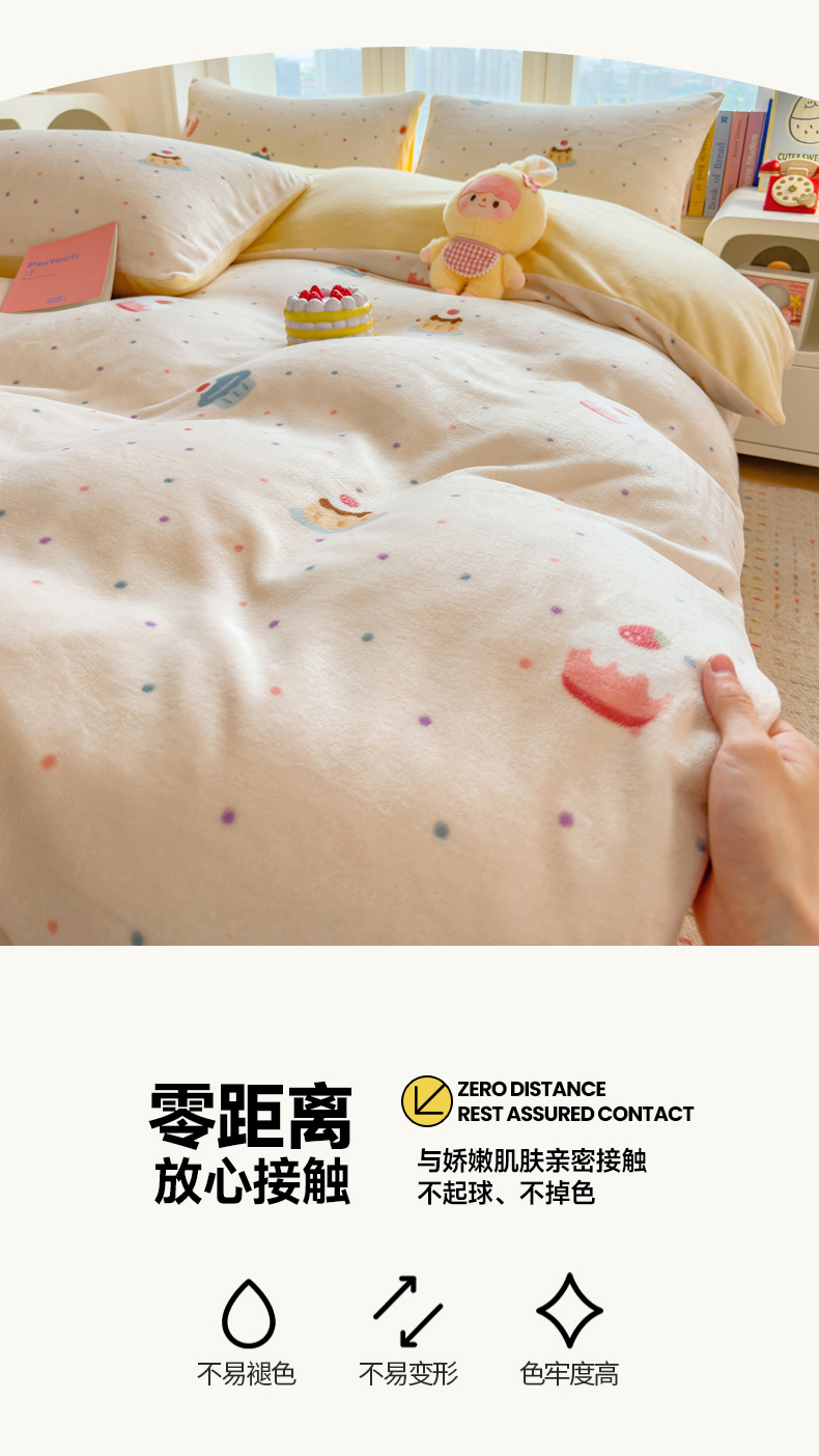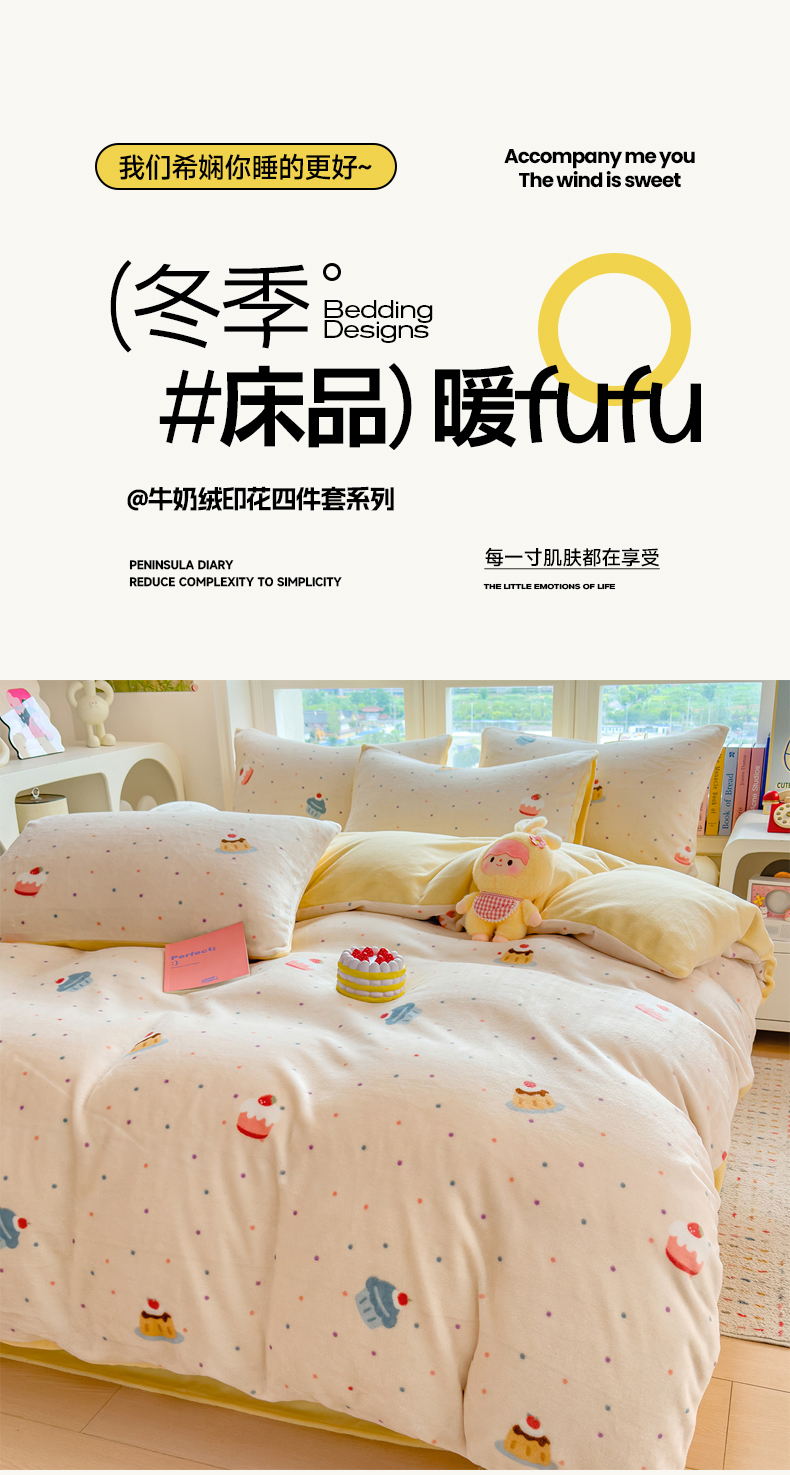 当前位置: 91家纺网 > 商品网购 > 床品套件 > 四件套 > 牛奶绒四件套 > 摩妮卡 摩妮卡 2025新款加厚款小清新牛奶绒印花四件套床单款床笠单被套 蛋糕派