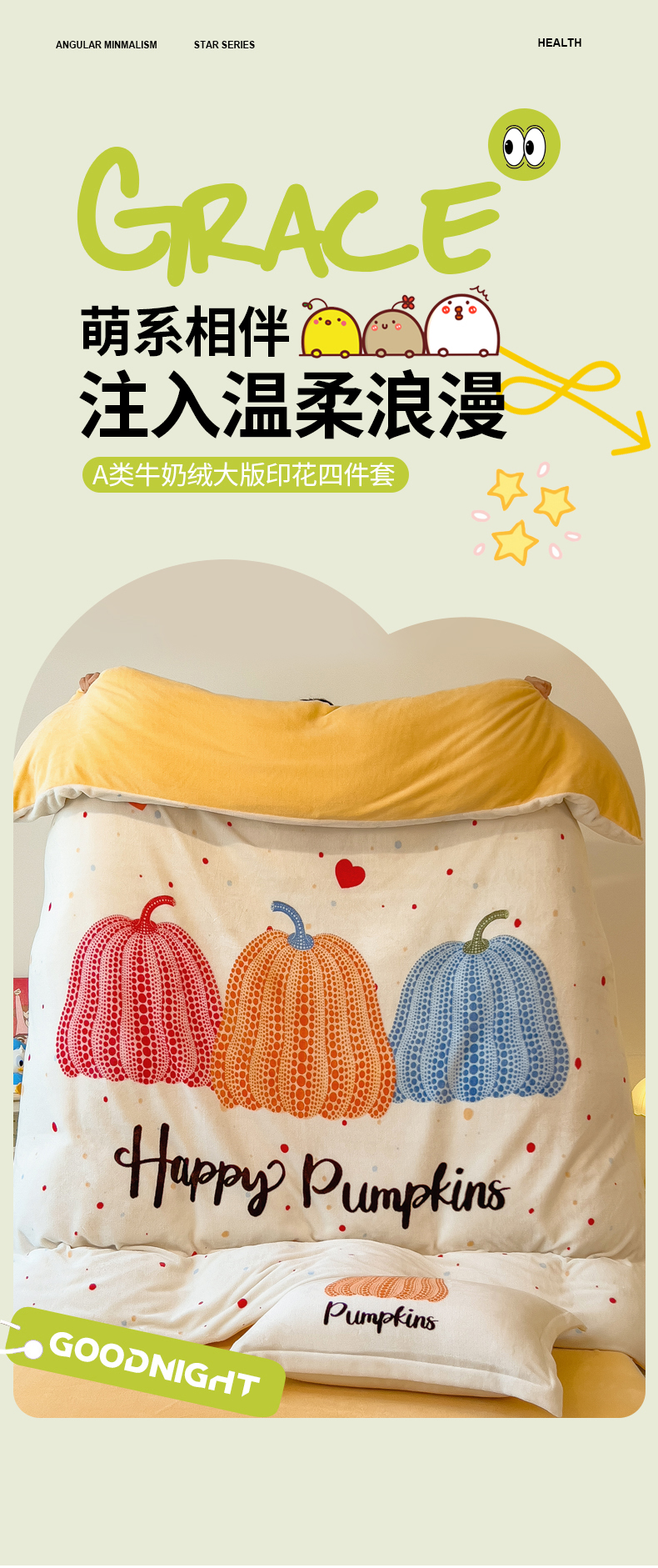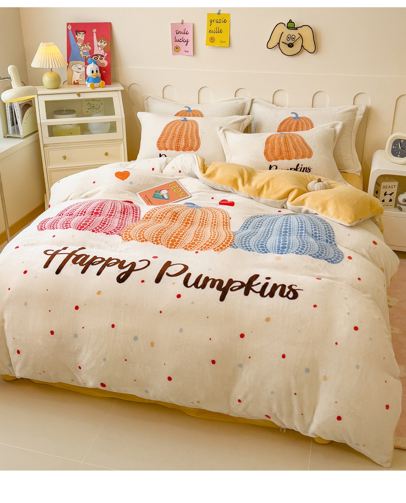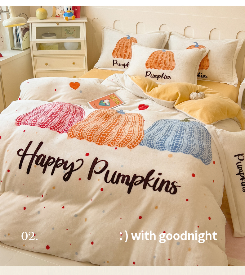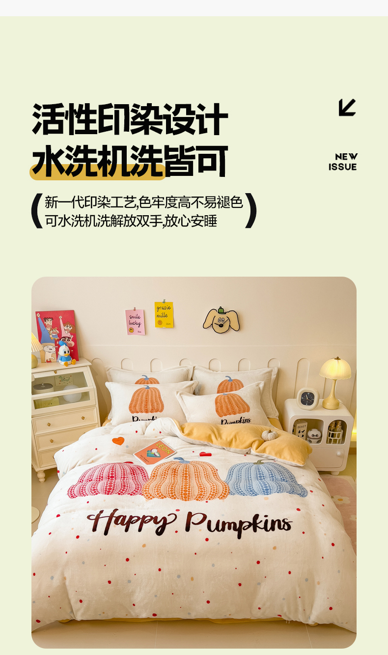 当前位置: 91家纺网 > 商品网购 > 床品套件 > 四件套 > 牛奶绒四件套 > 丝羽坊 2025新款A类大版牛奶绒印花四件套 南瓜派
