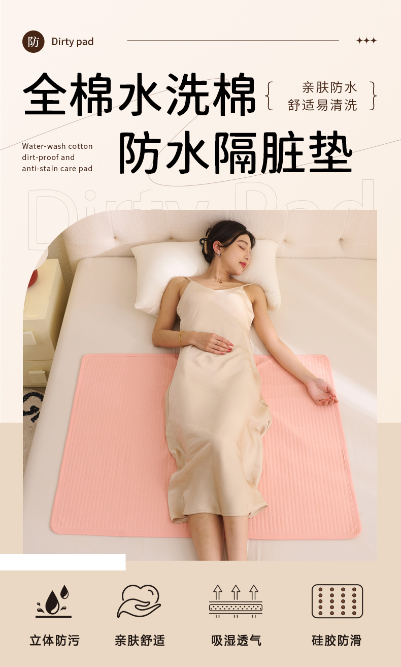 • 91家纺网 家纺一手货源 找家纺 拾小柒 2025新款全棉色织水洗棉防水隔脏姨妈垫护理垫 牛仔蓝