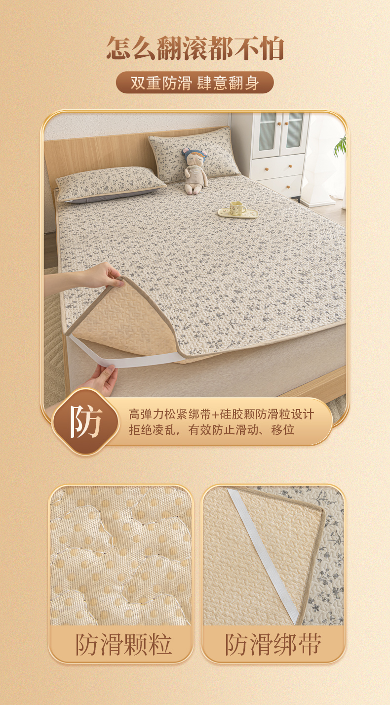 (总)拾小柒 2025年新款牛奶绒防滑床护垫加厚床垫隔脏垫冬季褥子床盖三件套,淡绿,浅粉,浅灰,浅水兰