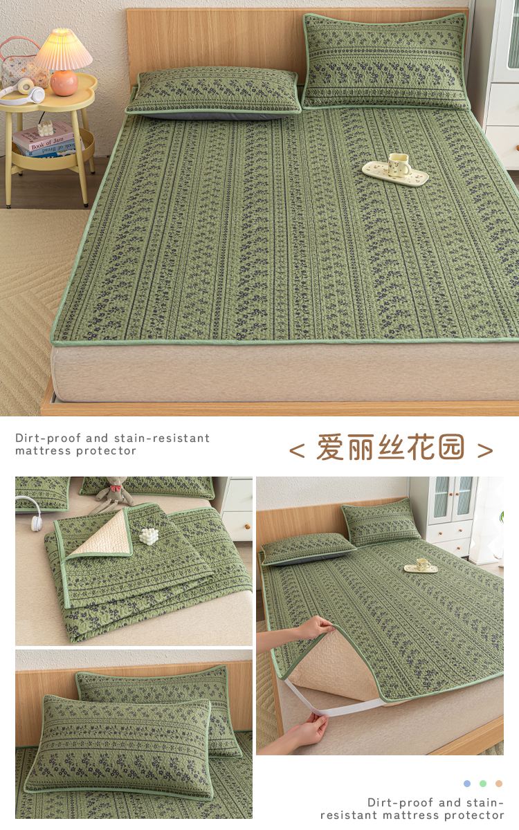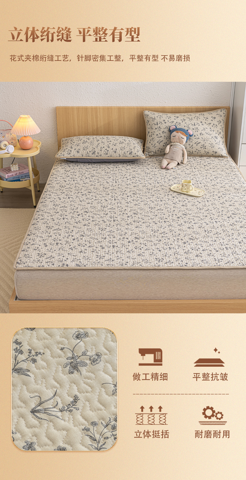(总)拾小柒 2025年新款全棉双层纱床护垫纯棉防滑床盖床褥子软床垫,爱丽丝花园,彩色杯黄,春色满园,格子狗米,七彩童年,山野小咖,忘忧草咖,英文象蓝