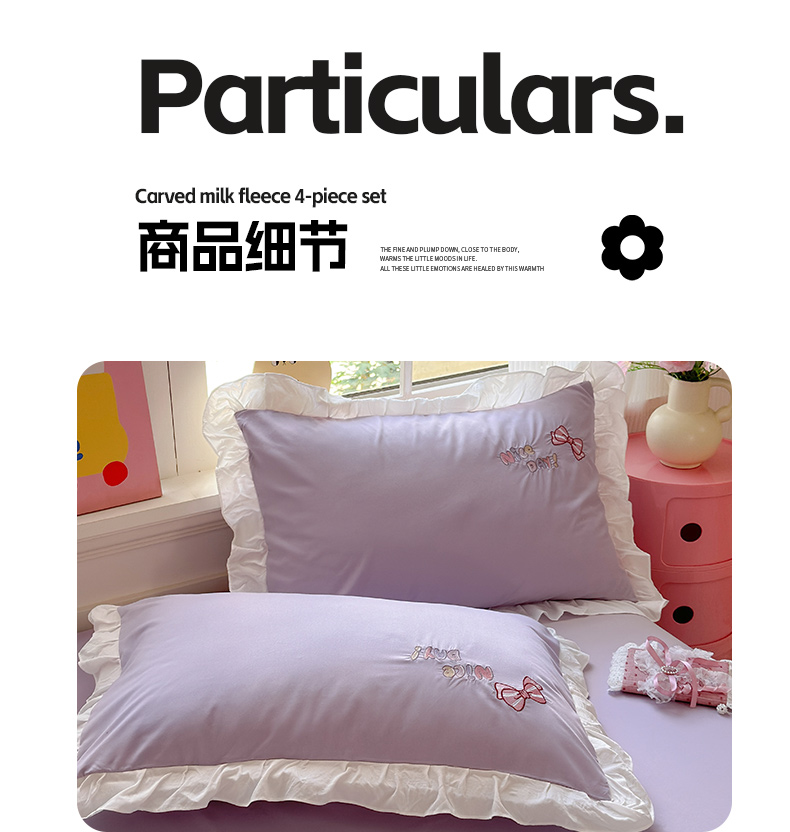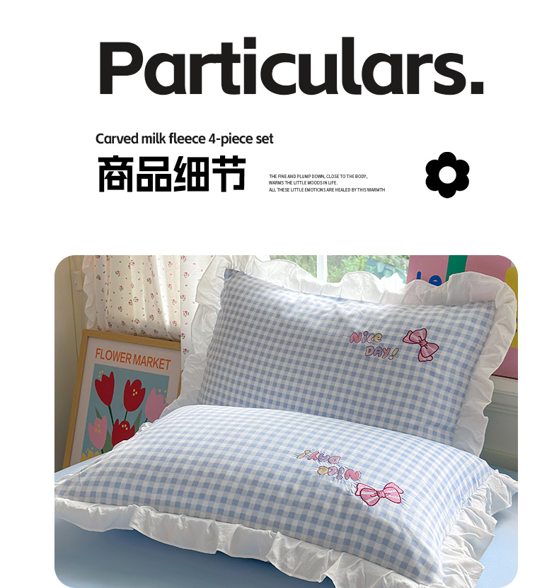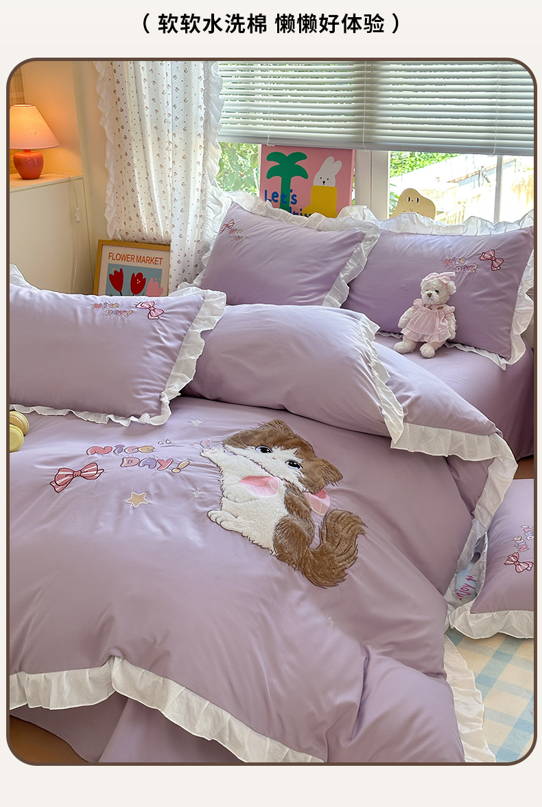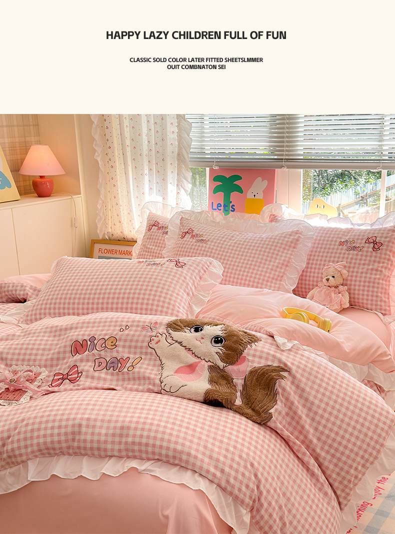 (总)易禾 2025新款韩版牛奶绒卡通兔毛贴布刺绣床单款床笠款四件套三件套小奶猫系列(专版),小奶猫——粉格,小奶猫——蓝格,小奶猫——浅粉,小奶猫——浅紫
