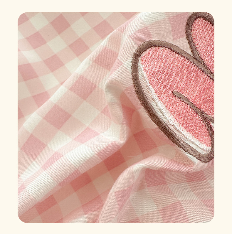 (总)易禾家纺 2025新品韩系小清新水洗棉毛巾绣露比系列四件套(专版花型),露比-爱心紫,露比-波点奶黄,露比-粉,露比-粉格,露比-樱桃粉