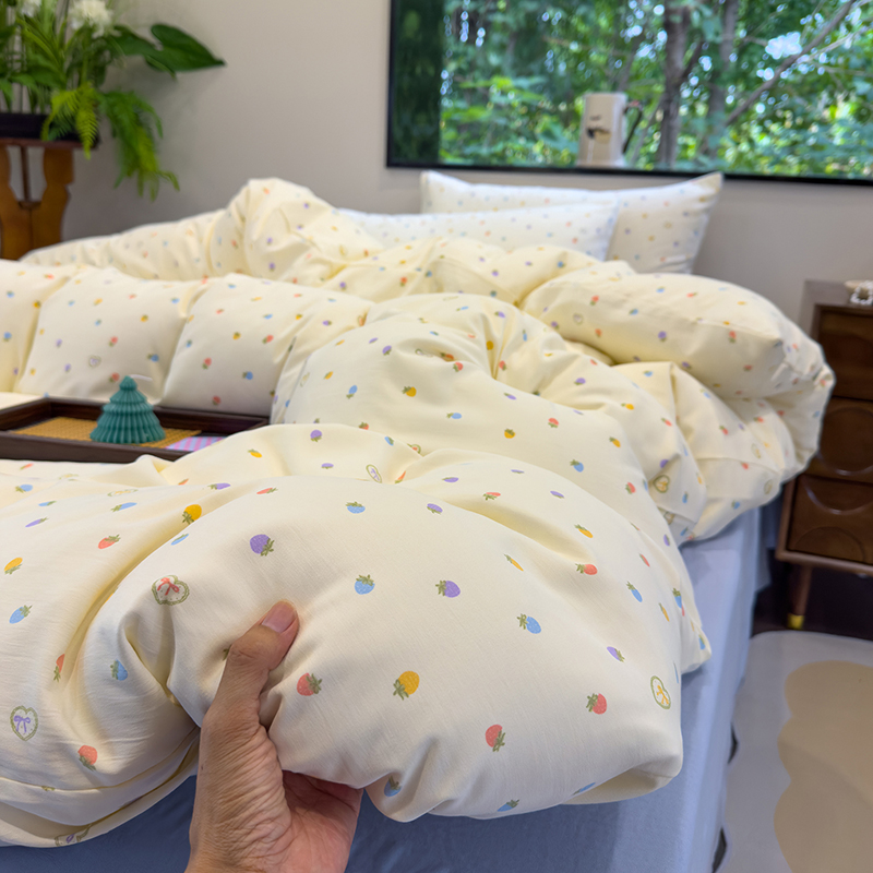 竹合家纺 2025秋冬新品爆款有氧人字纹提花小清新加厚四件套 草莓点点