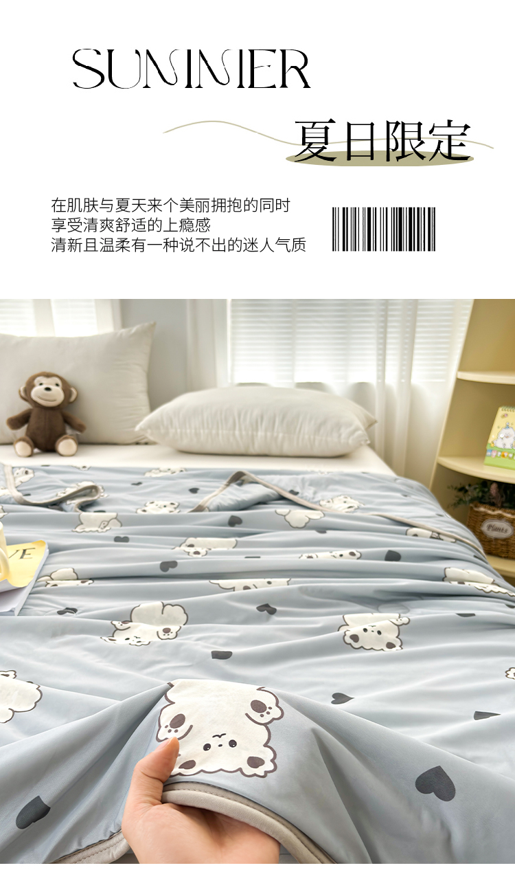 (总)观月轩家纺 2025新款亲肤舒适凉感丝夏被夏凉被空调被,爱心熊-灰,欢乐狗-蓝,快乐伙伴,仙草-蓝,小熊警长,小熊派对,星球兔-米黄,遇见春天,彼得兔庄园-咖,富贵花开-米黄