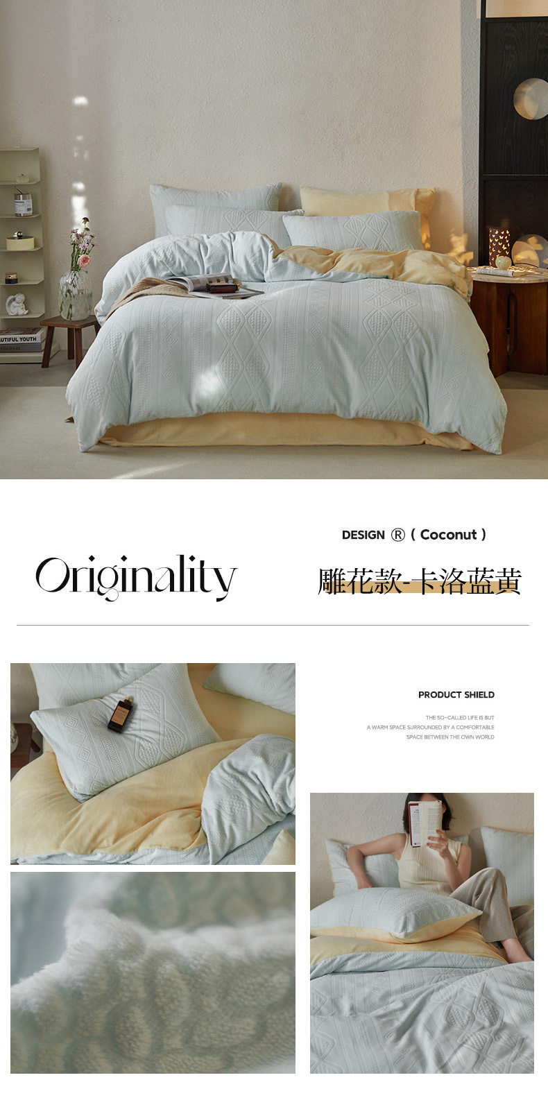 当前位置: 91家纺网 > 商品网购 > 床品套件 > 四件套 > 牛奶绒四件套 > 眠博士 2025新款雕花加厚牛奶绒系列四件套 雕花款-卡洛白黄