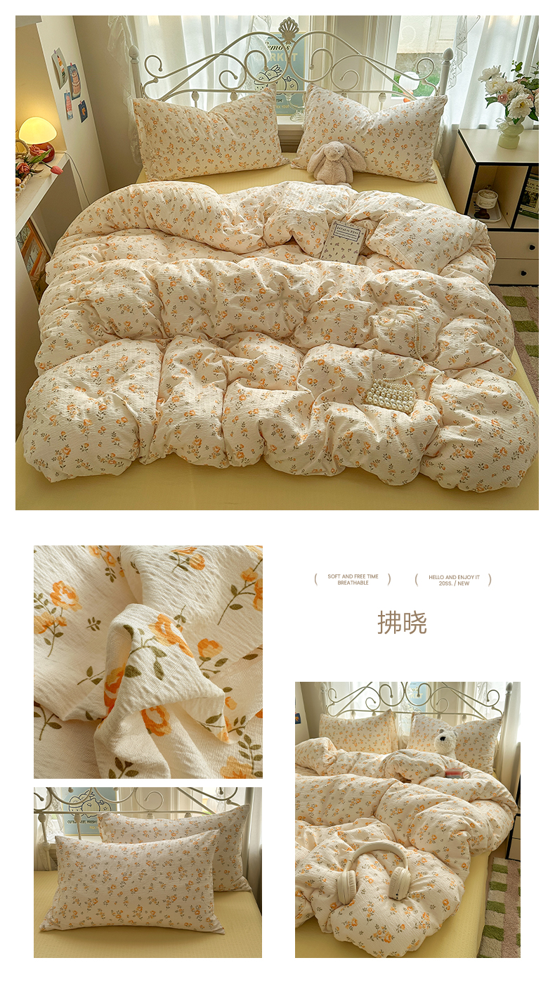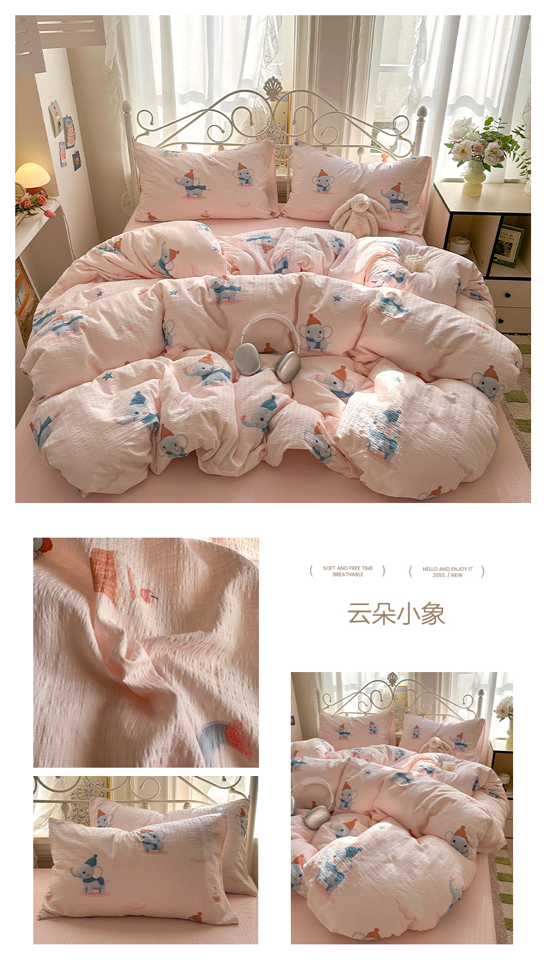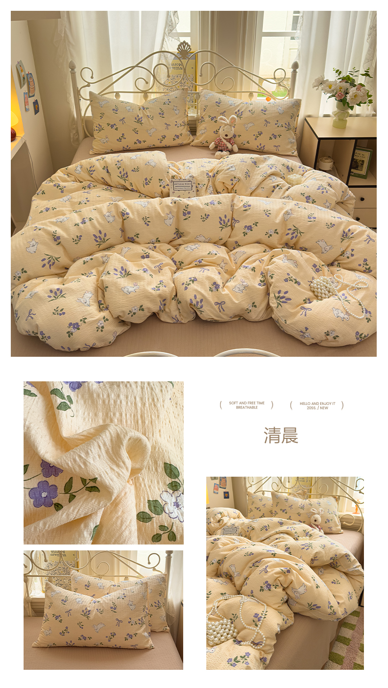 当前位置: 91家纺网 > 商品网购 > 床品套件 > 四件套 > 双层纱四件套 > 卡斯诺家纺馆 2025新款A类皱皱棉双层纱印花四件套 草莓乐园