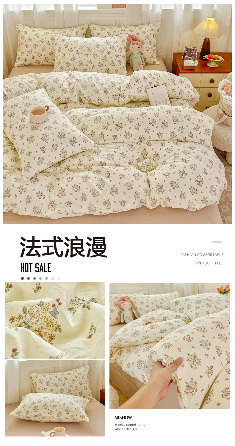 当前位置: 91家纺网 > 商品网购 > 床品套件 > 四件套 > 水洗棉四件套 > 斯卡诺家纺 2026爆款古法水洗仿棉四件套韩国小布袋五件套(高克重斜纹加厚) 花季