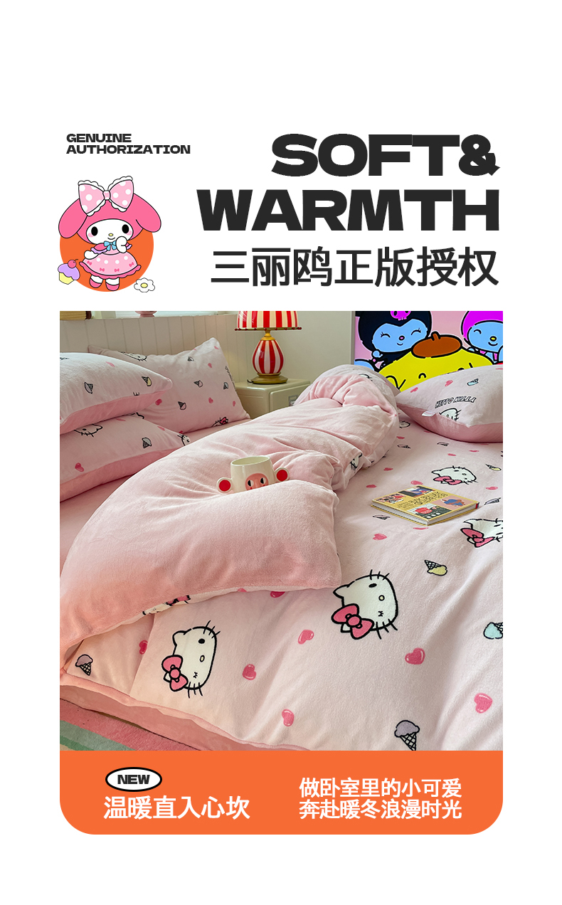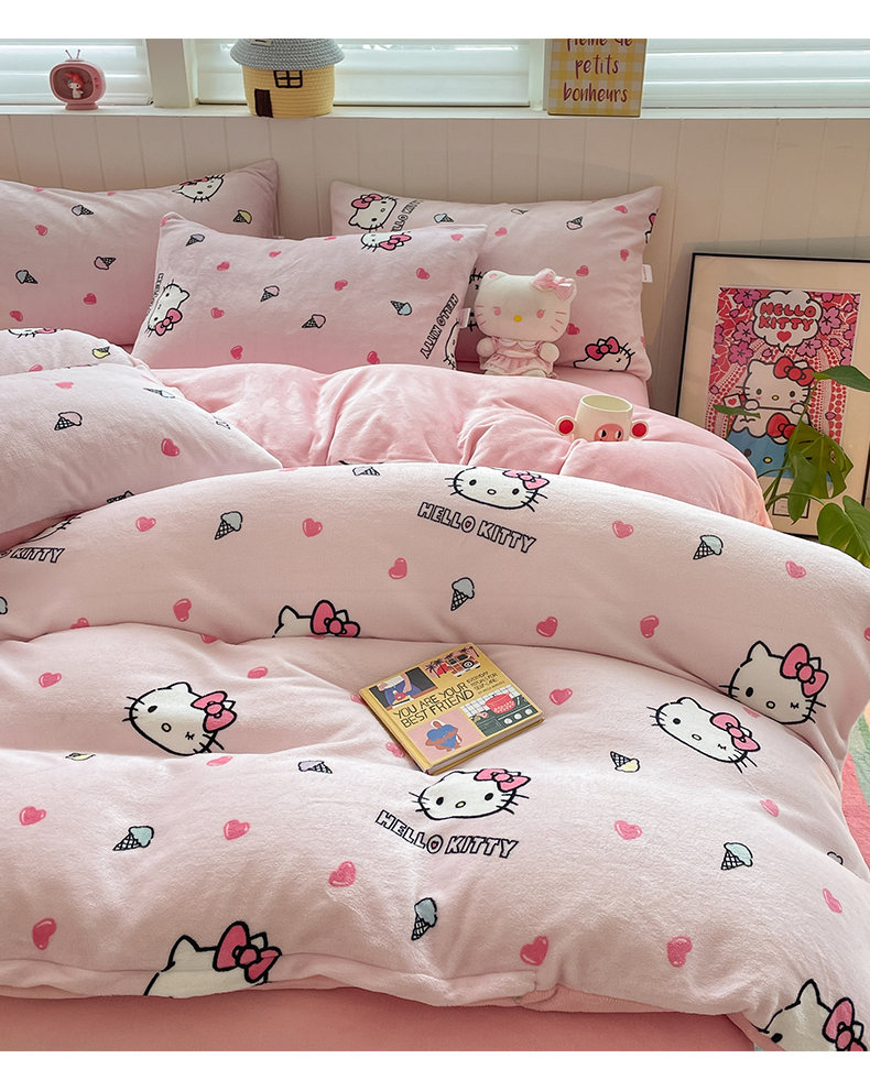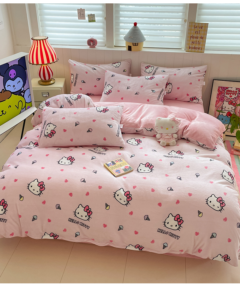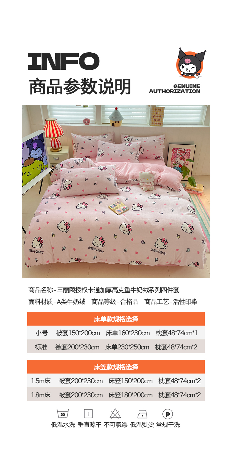 当前位置: 91家纺网 > 商品网购 > 床品套件 > 四件套 > 牛奶绒四件套 > 金爱家 2025新款A类正版三丽鸥授权卡通加厚高克重牛奶绒系列四件套 绒三丽鸥-粉心甜筒kitty