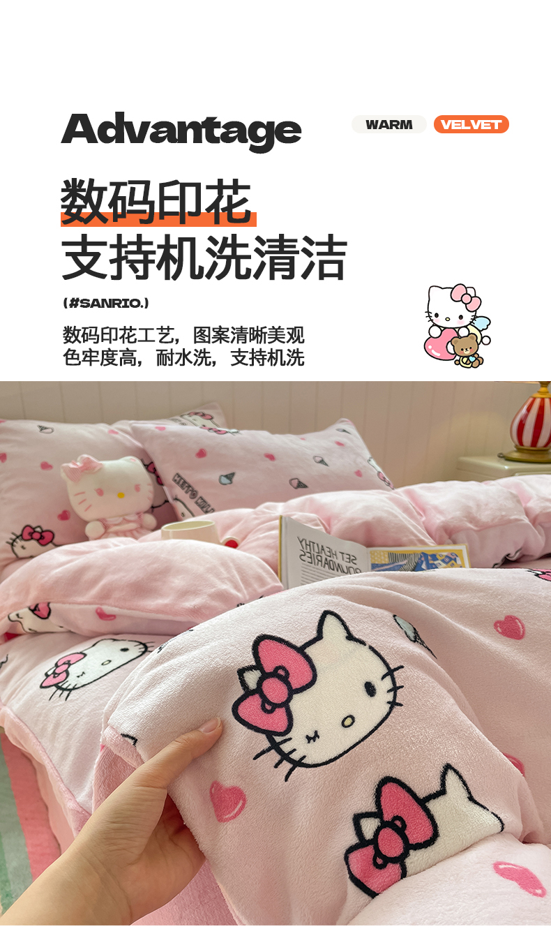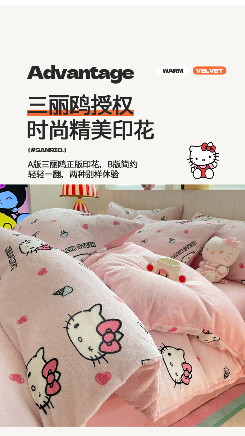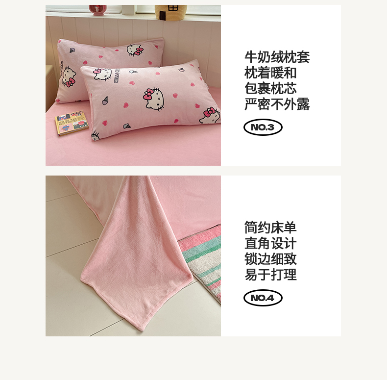 当前位置: 91家纺网 > 商品网购 > 床品套件 > 四件套 > 牛奶绒四件套 > 金爱家 2025新款A类正版三丽鸥授权卡通加厚高克重牛奶绒系列四件套 绒三丽鸥-粉心甜筒kitty