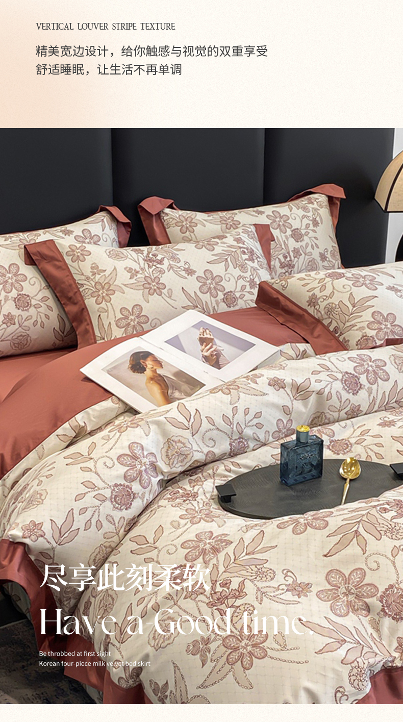 (总)娇逸家居 2025新款高克重A类数码印花牛奶绒双拼边款四件套,采薇灰,扶桑,浅影,秋灵粉,秋灵黄,秋灵绿,舜华粉,采薇米,舜华绿,仙客,栩蝶,璎珞,玉树,芸芙