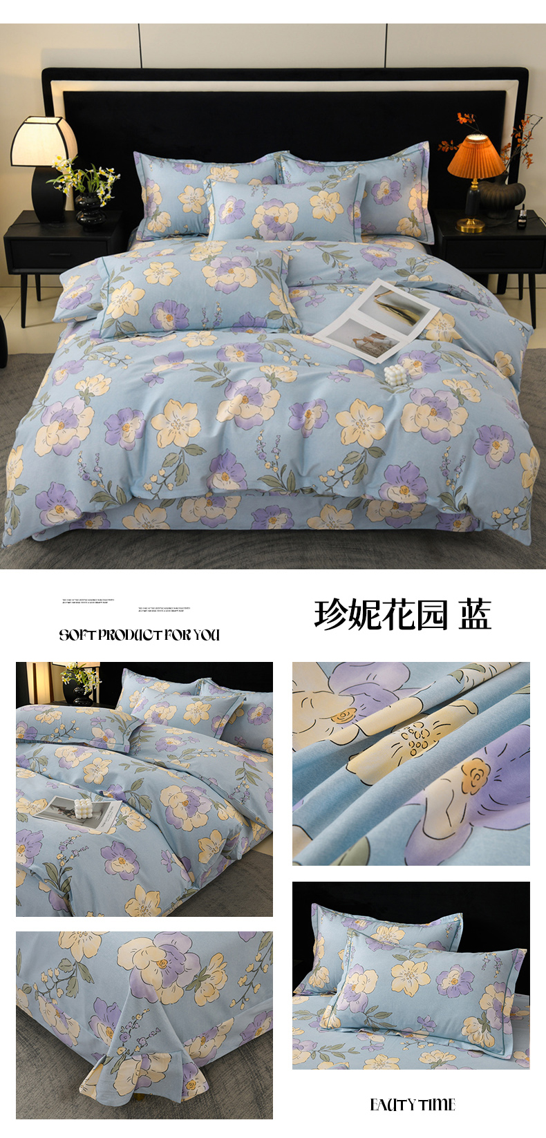 润淳家居 2025新款百分百全棉磨毛四件套 珍妮花园 蓝