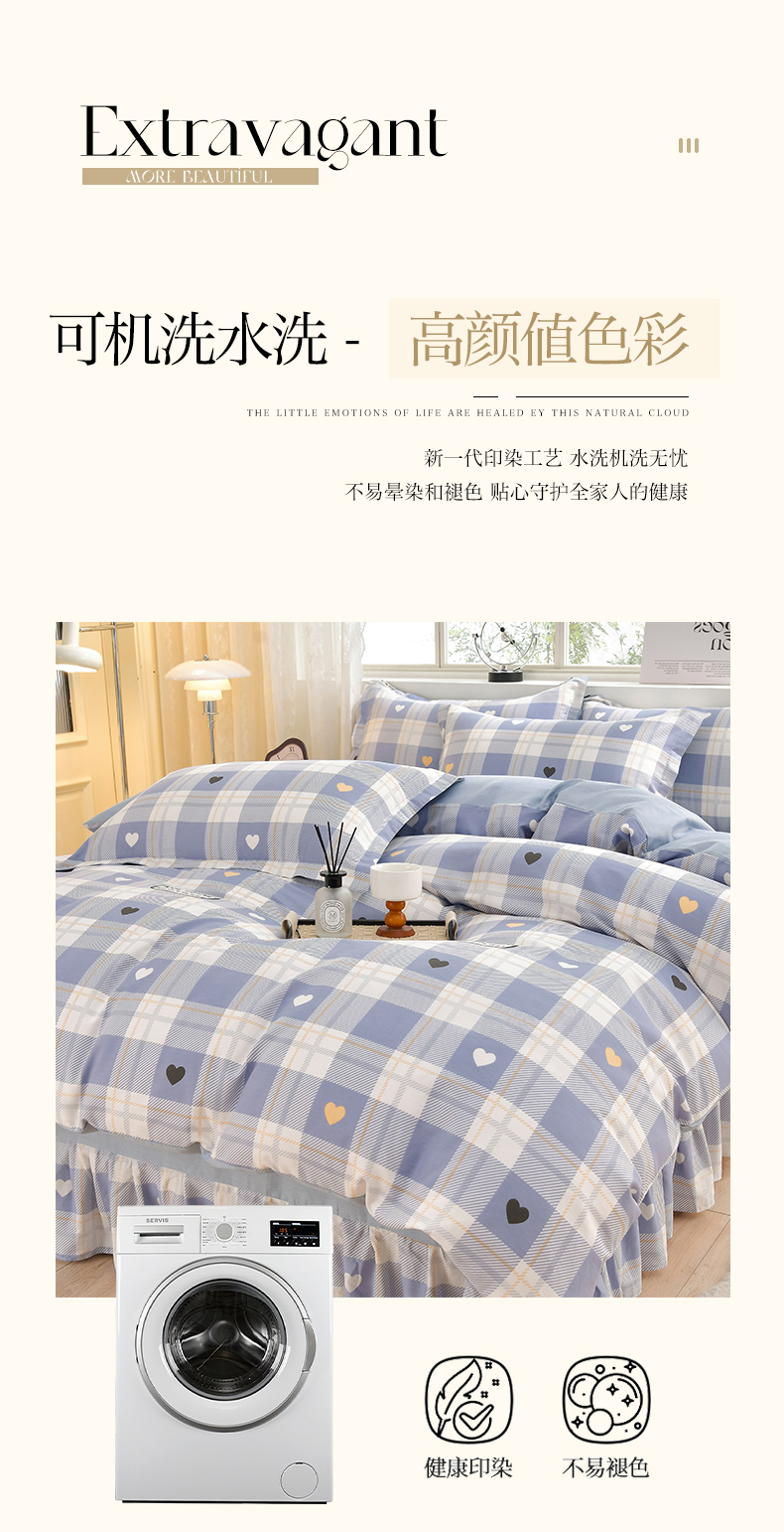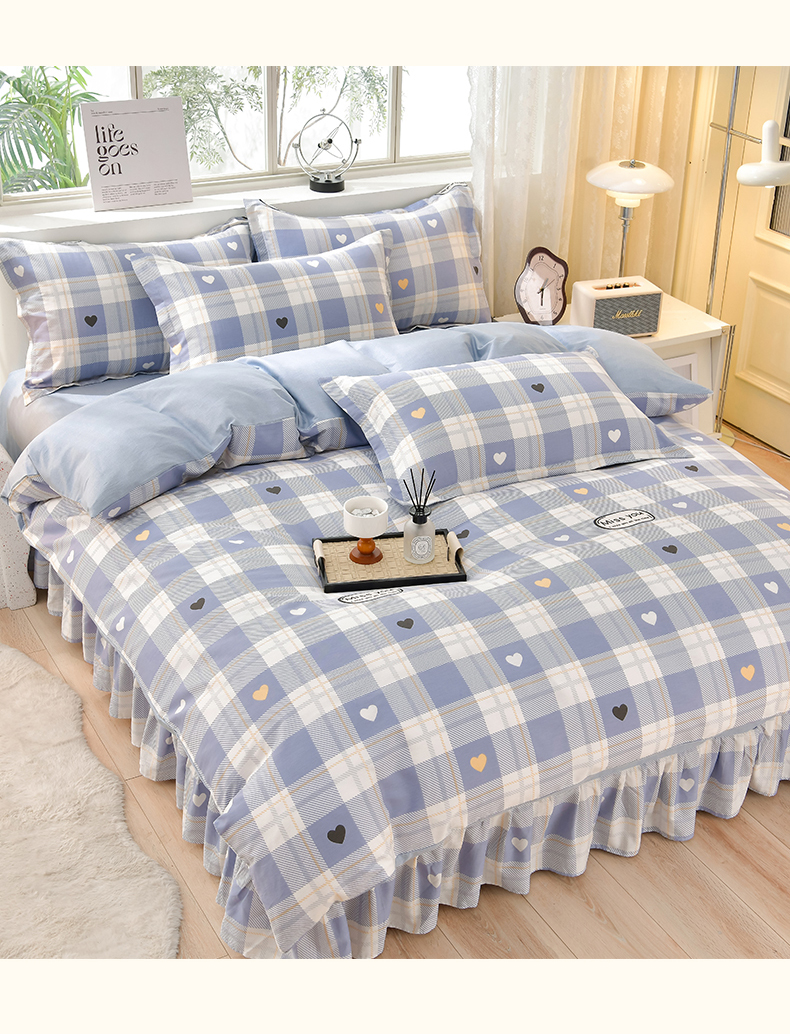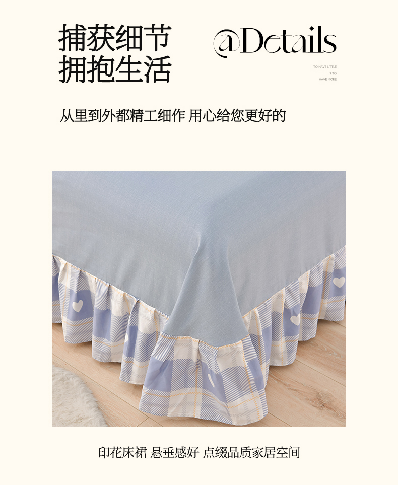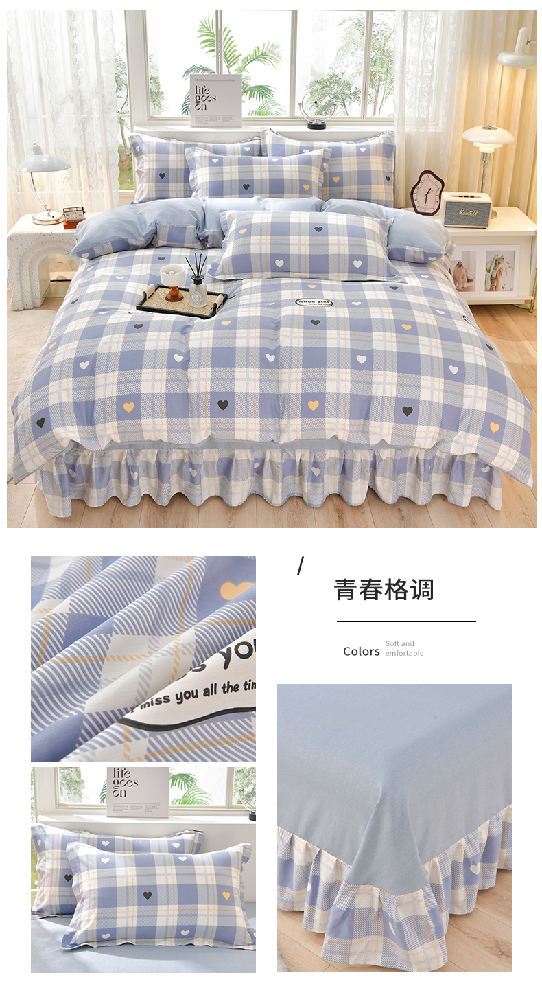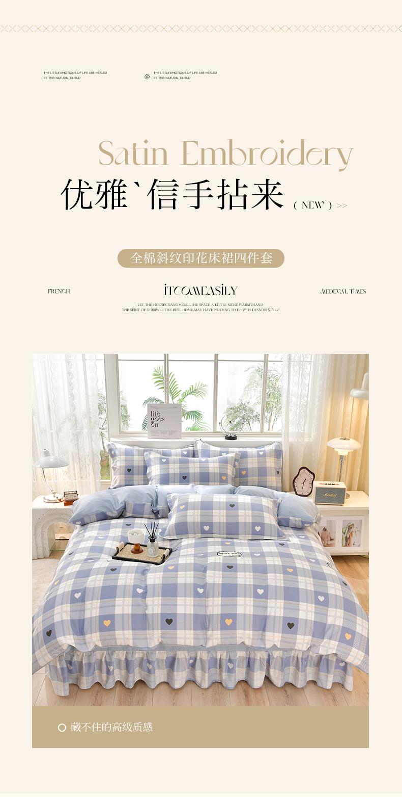 商品名称:绘萱家居 2025新款100%全棉床裙款斜纹印花四件套 青春格调