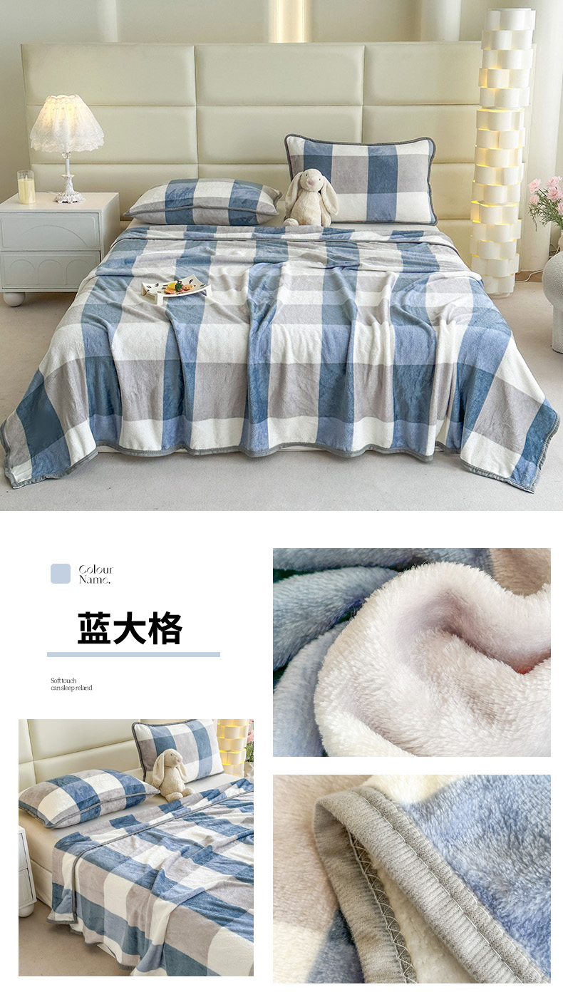 商品名称:欧喜璐 2025新款卡通印花加厚牛奶绒多功能毛毯 蓝大格