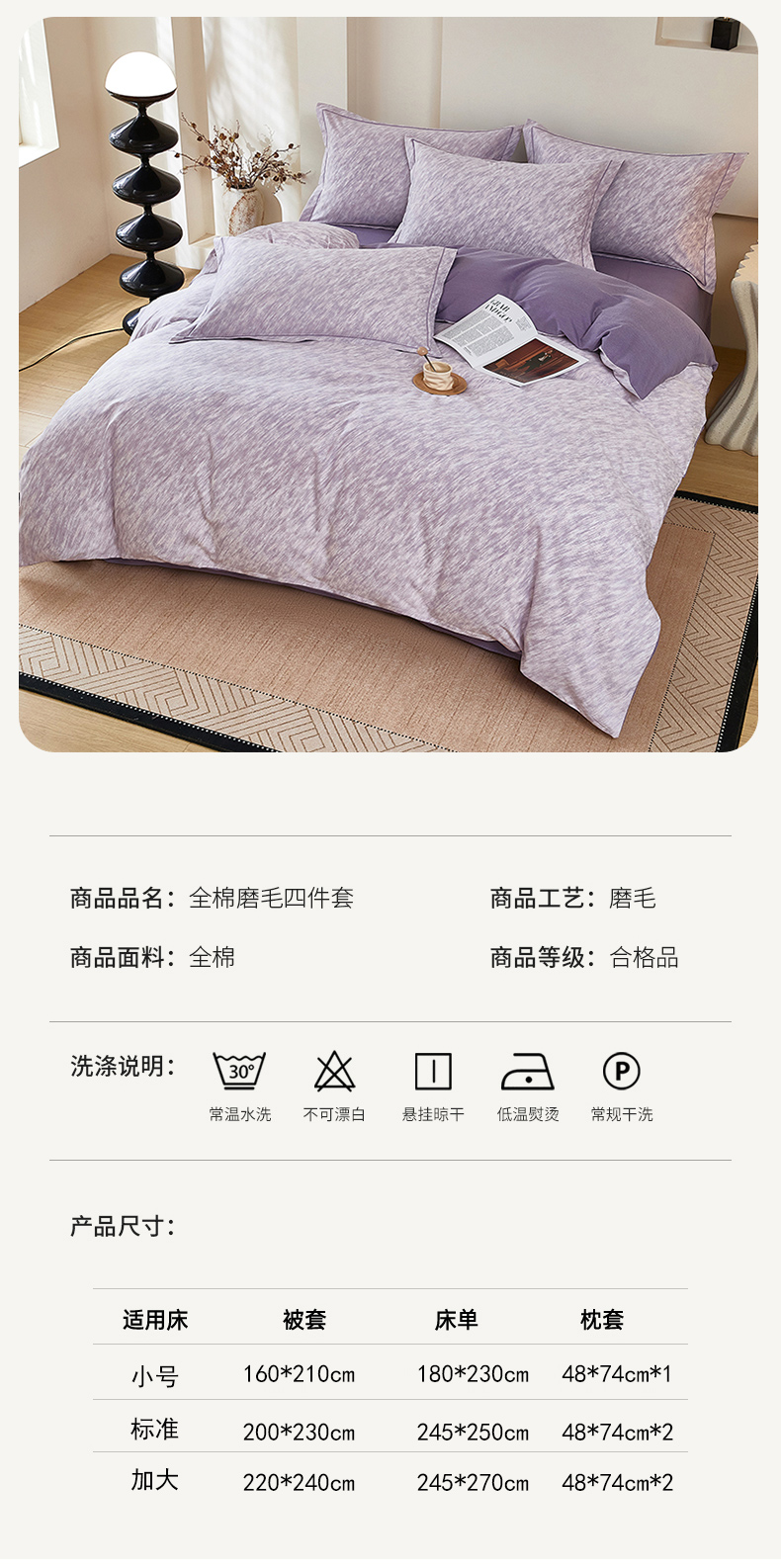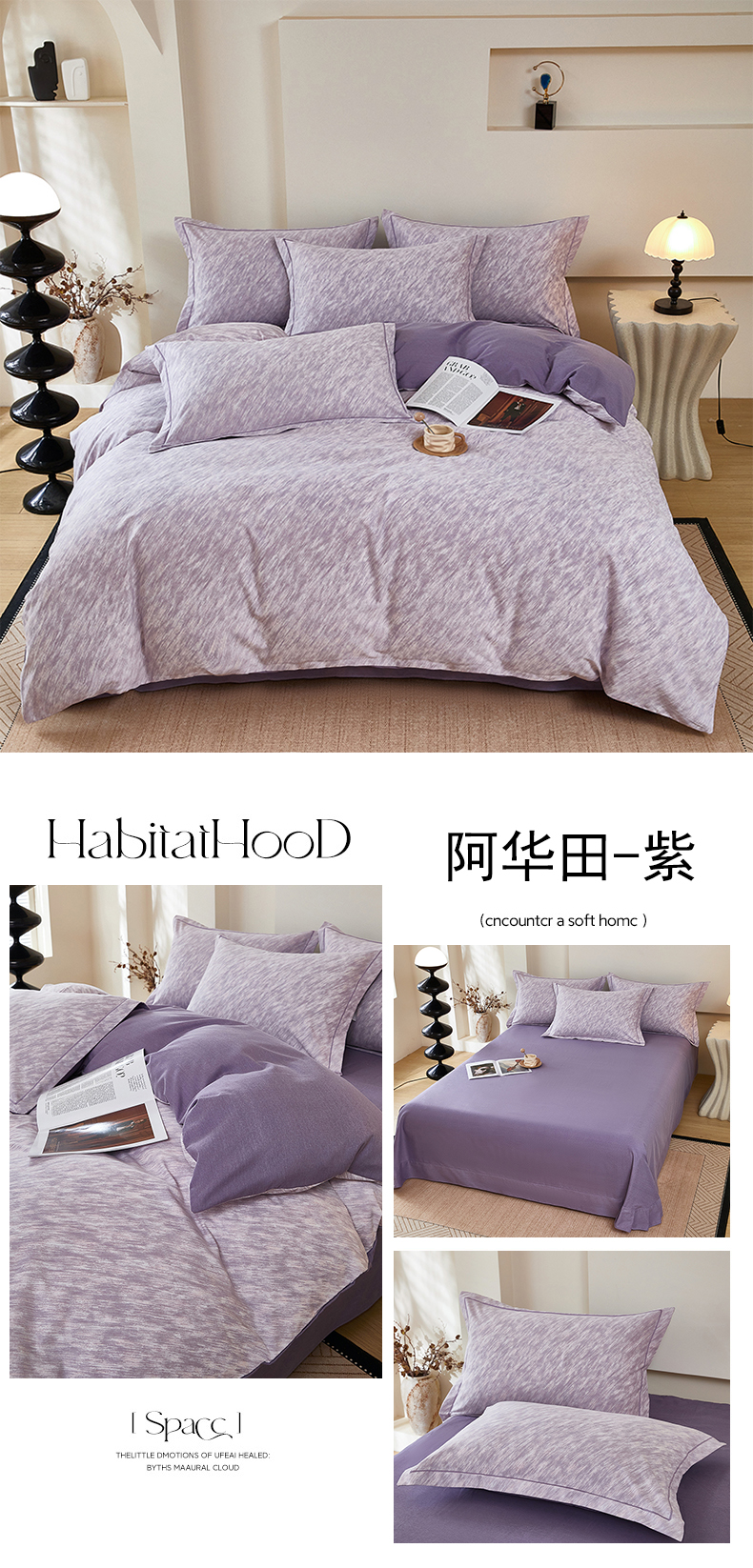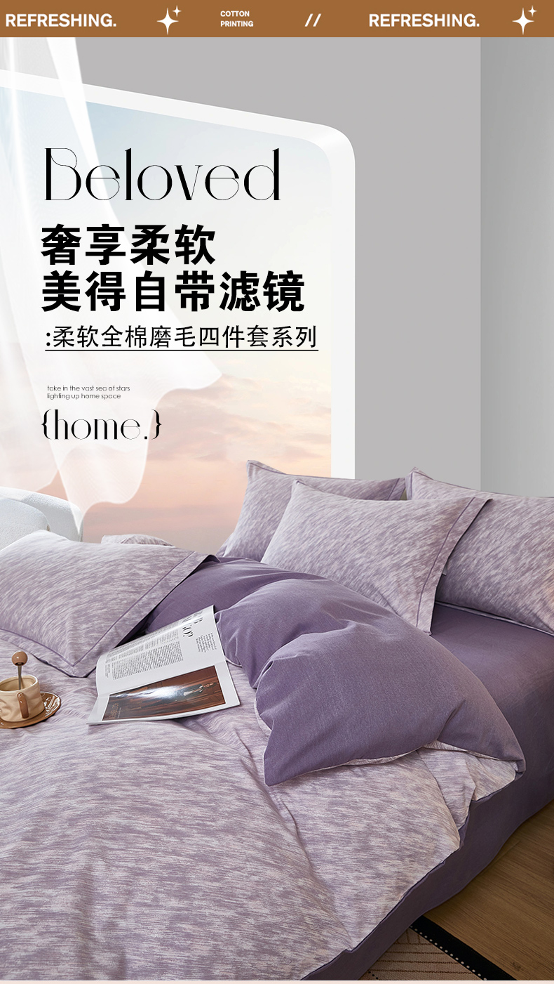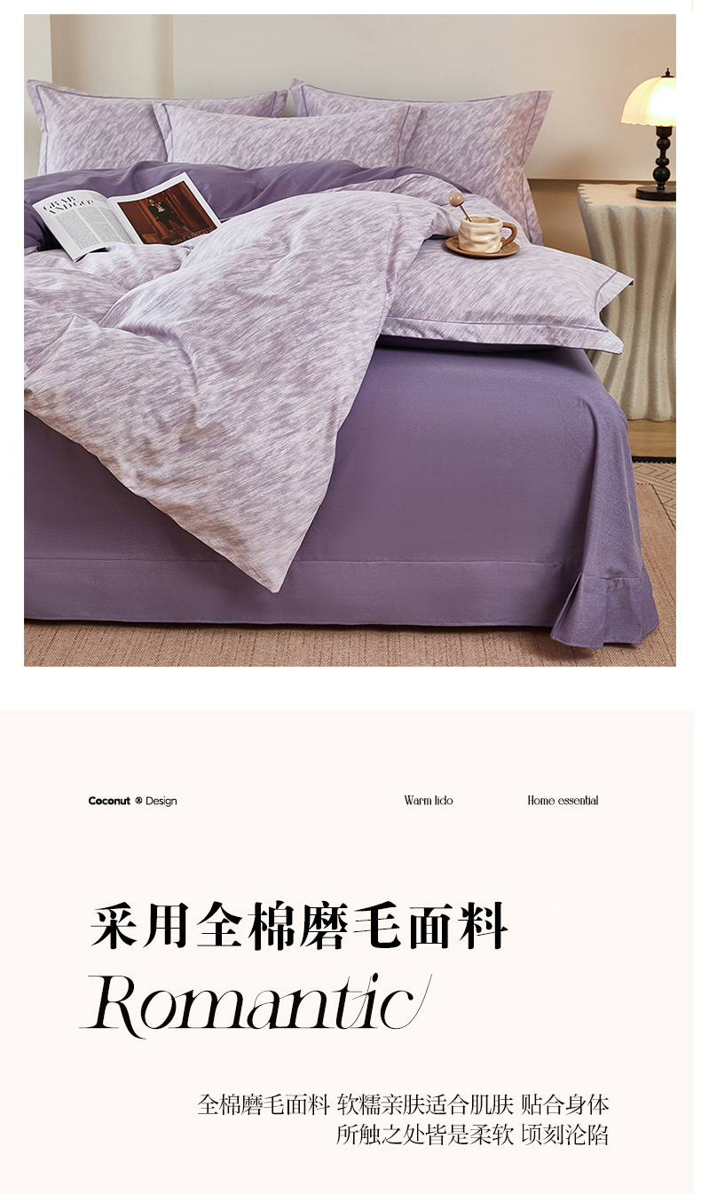 商品名称:雲归梦 2025新款纯棉加厚磨毛多规格磨毛四件套阿华田-紫