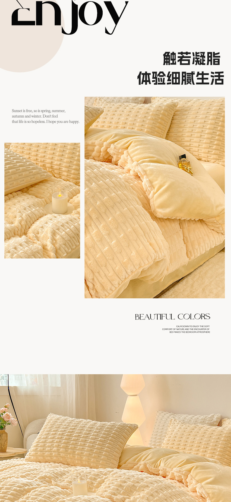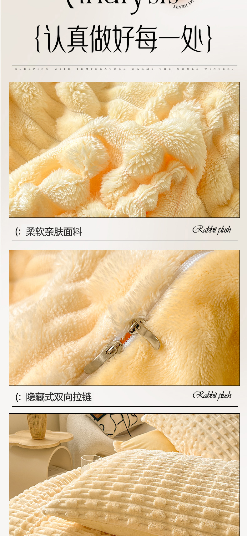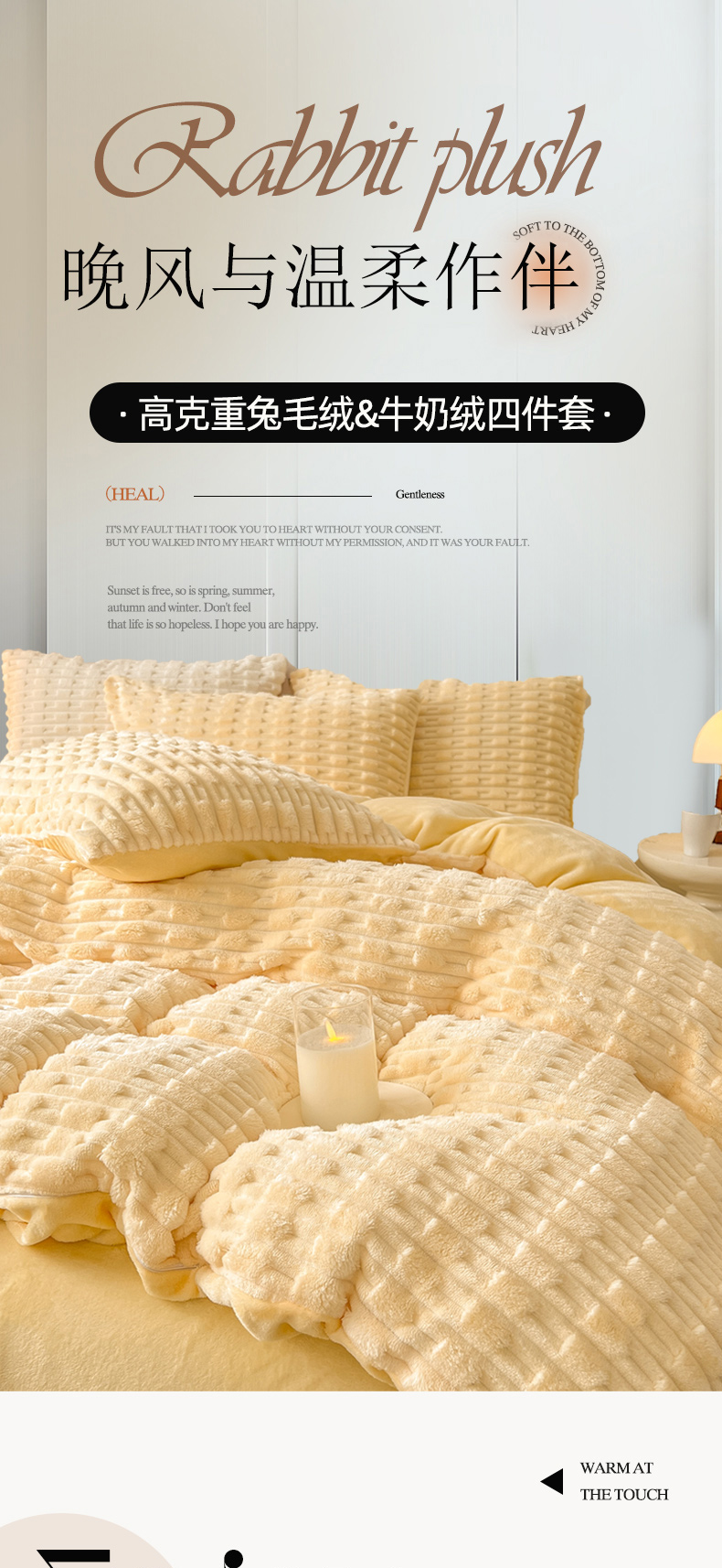 当前位置: 91家纺网 > 商品网购 > 床品套件 > 四件套 > 其它四件套 > 爱彼家纺 2025新款糖果色兔兔绒套件秋冬加厚牛奶绒四件套-场景二 暖黄黄