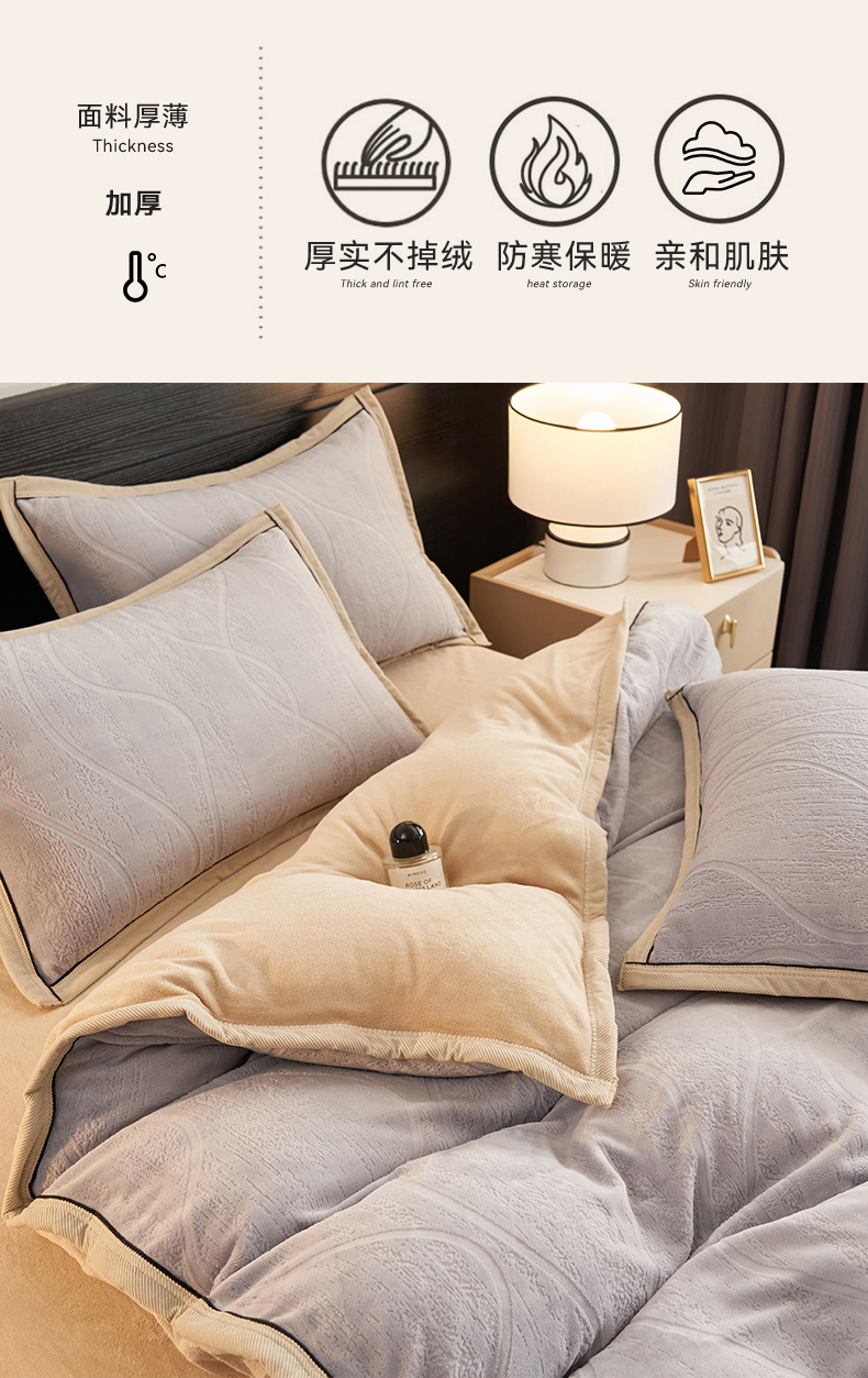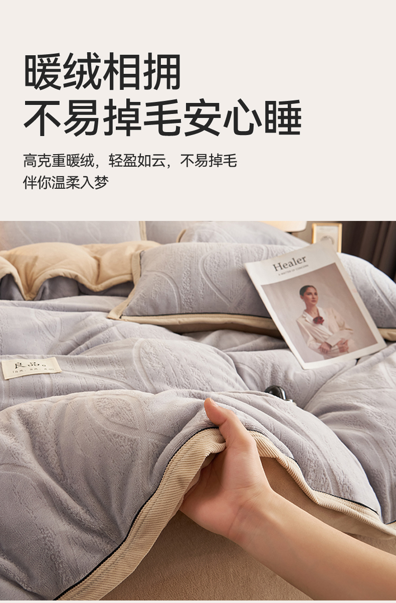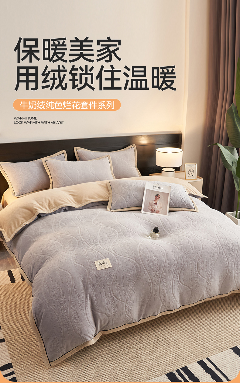 当前位置: 91家纺网 > 商品网购 > 床品套件 > 四件套 > 牛奶绒四件套 > 恒爱家纺 2025新款牛奶绒纯色烂花四件套 卡曼-绅士灰