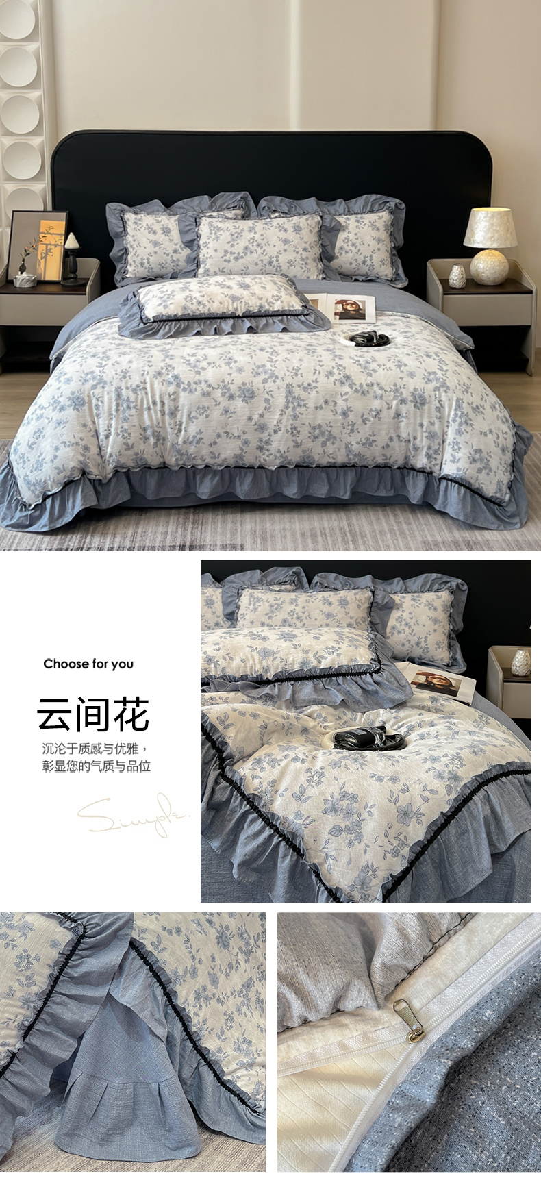 玉海棠家纺 2026新款古法水洗仿棉云感纱四件套 秋水,秋水