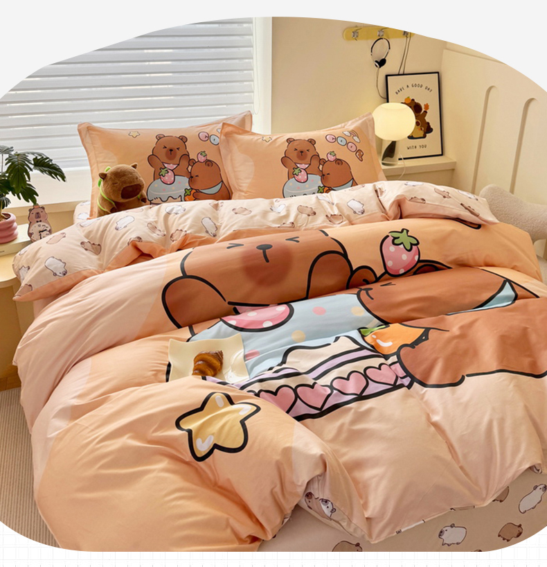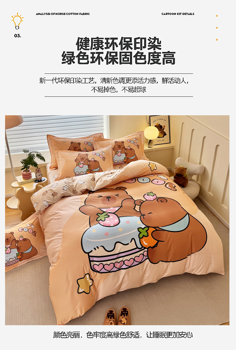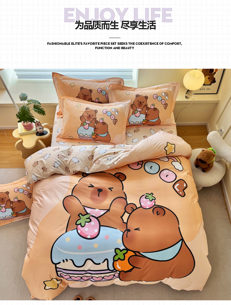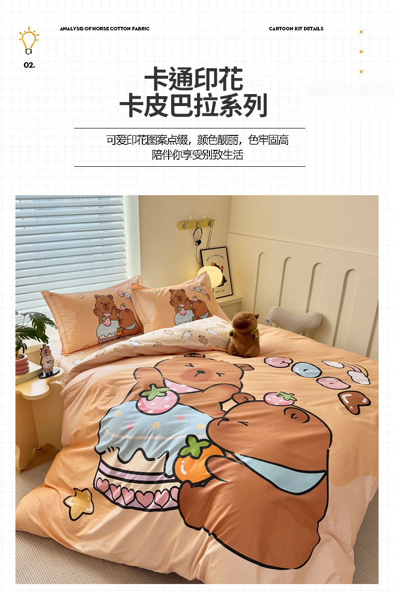 当前位置: 91家纺网 > 商品网购 > 床品套件 > 四件套 > 全棉普通四件套 > 蘭菲家纺 2025新款全棉大版卡皮巴拉系列四件套 爱卡皮