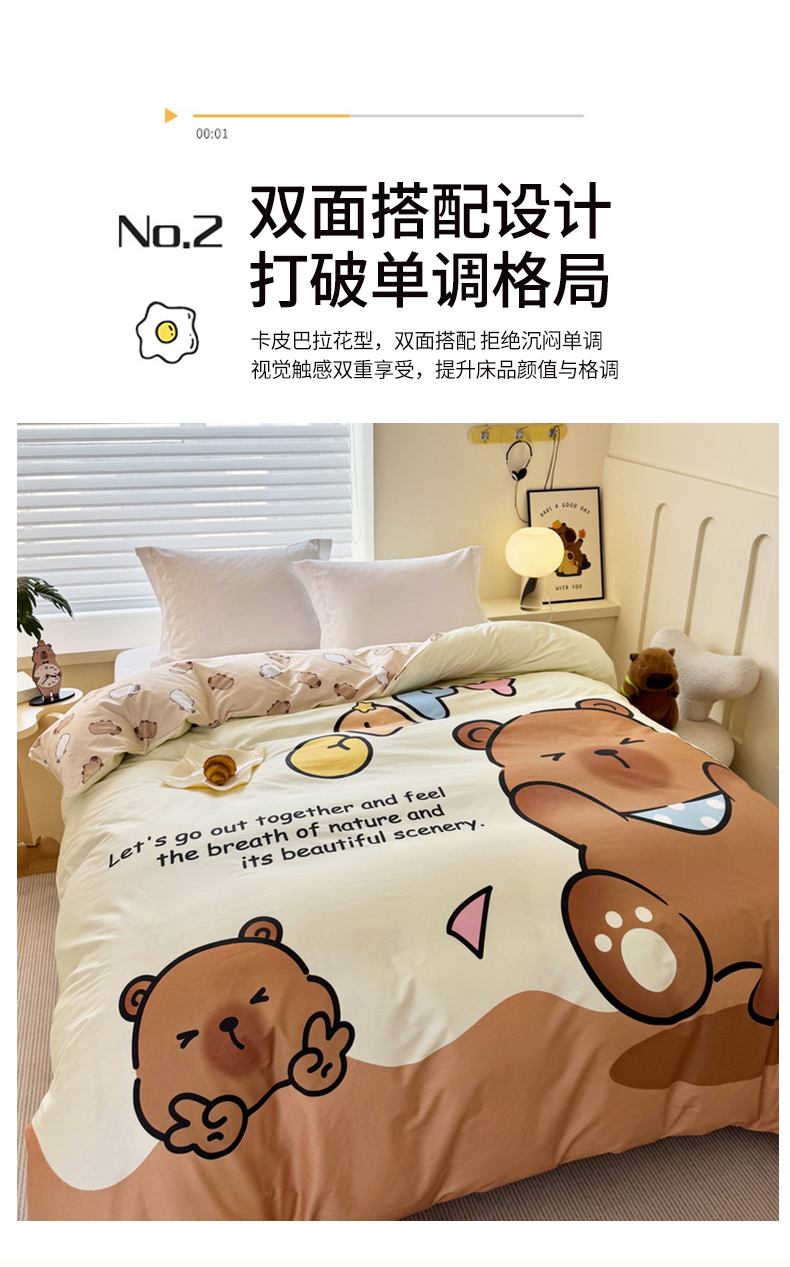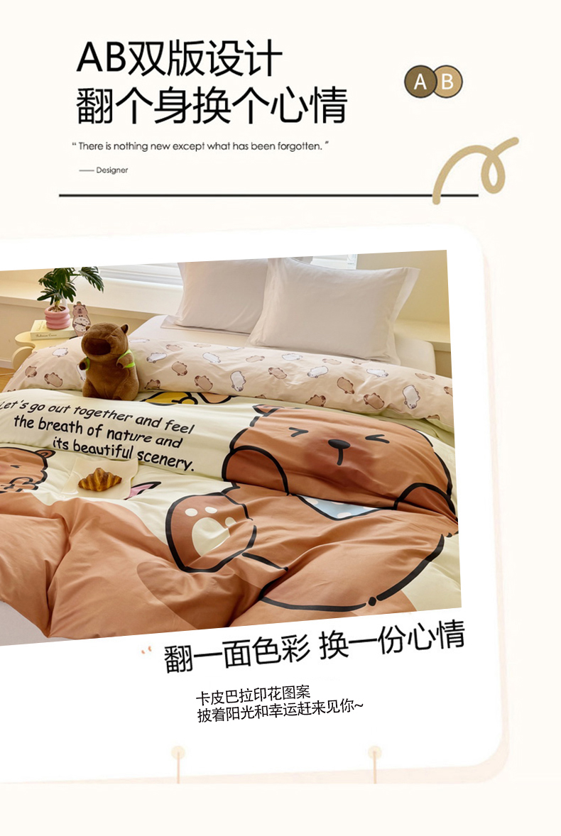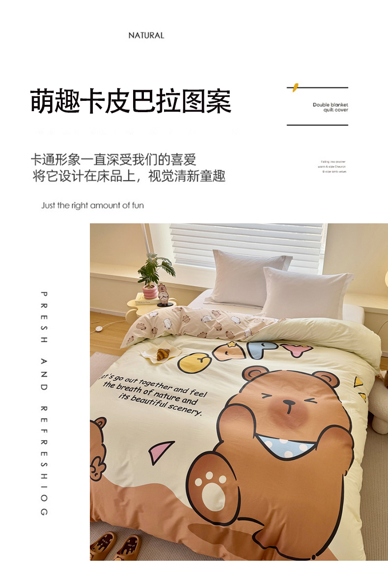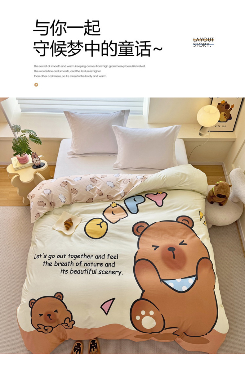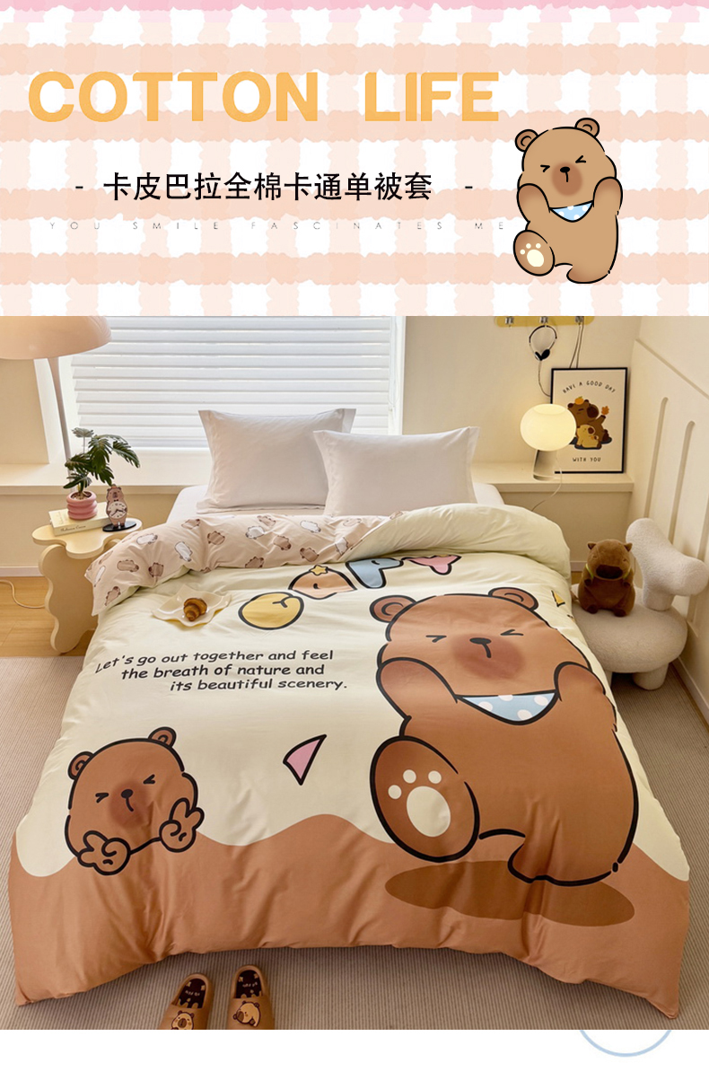 商品名称:蘭菲家纺 2025新款全棉大版卡皮巴拉系列单品被套 熊巴拉