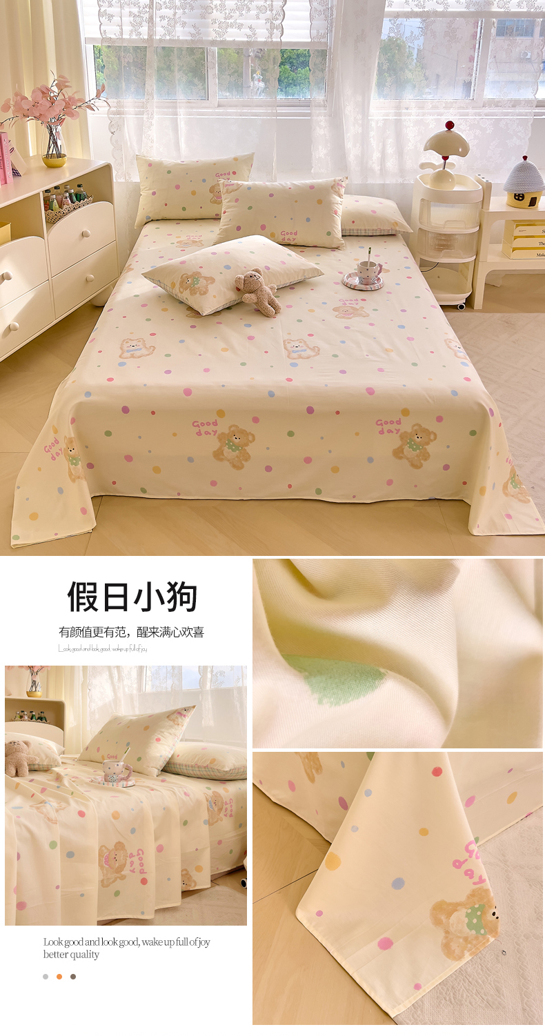 • 91家纺网 家纺一手货源 找家纺 DoDo 兜兜 2025新款卡通全棉纯棉小清新单品床单系列 (可定做尺寸) 小狗笔记