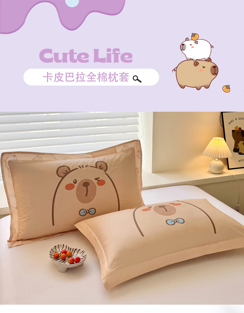 蘭菲家纺 2025新款全棉小版卡皮巴拉系列单品枕套 小卡