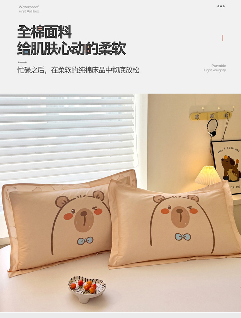 商品名称:蘭菲家纺 2025新款全棉小版卡皮巴拉系列单品枕套 小卡