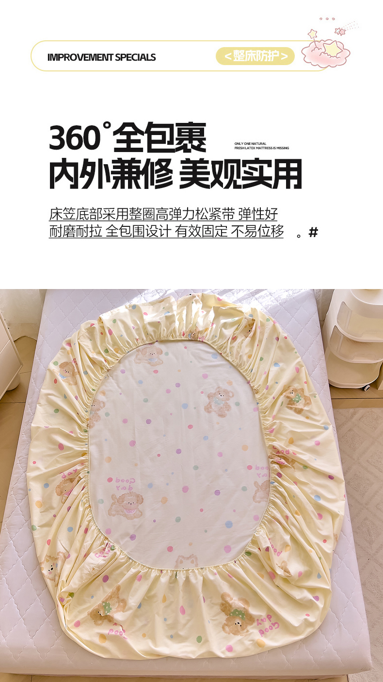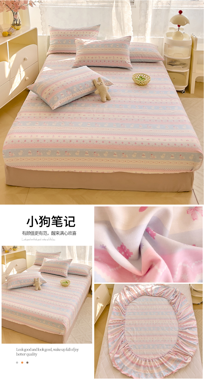 • 91家纺网 家纺一手货源 找家纺 DoDo 兜兜 2026新款卡通全棉纯棉小清新单品床笠系列 (可定做尺寸) 蘑菇小狗