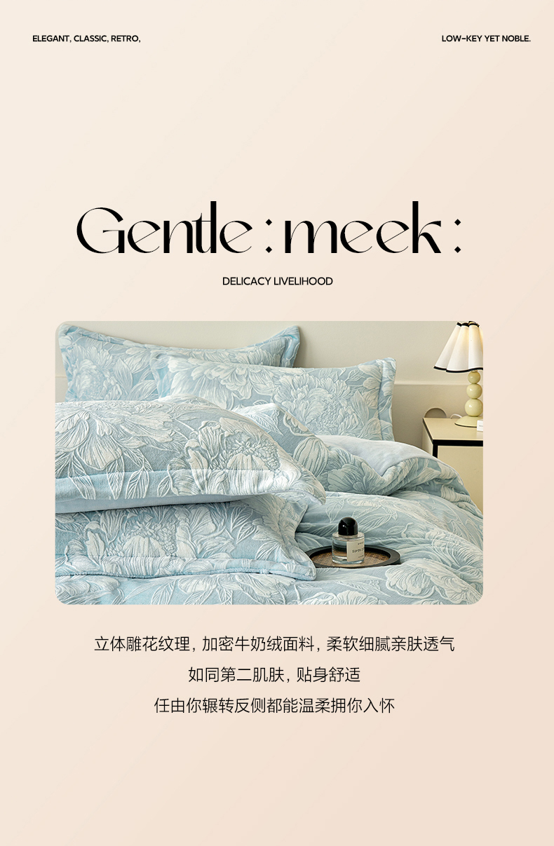 贝诗梦 2025直播8.5斤高克重牛奶绒金貂法莱绒保暖四件套 月光玫瑰,月光玫瑰