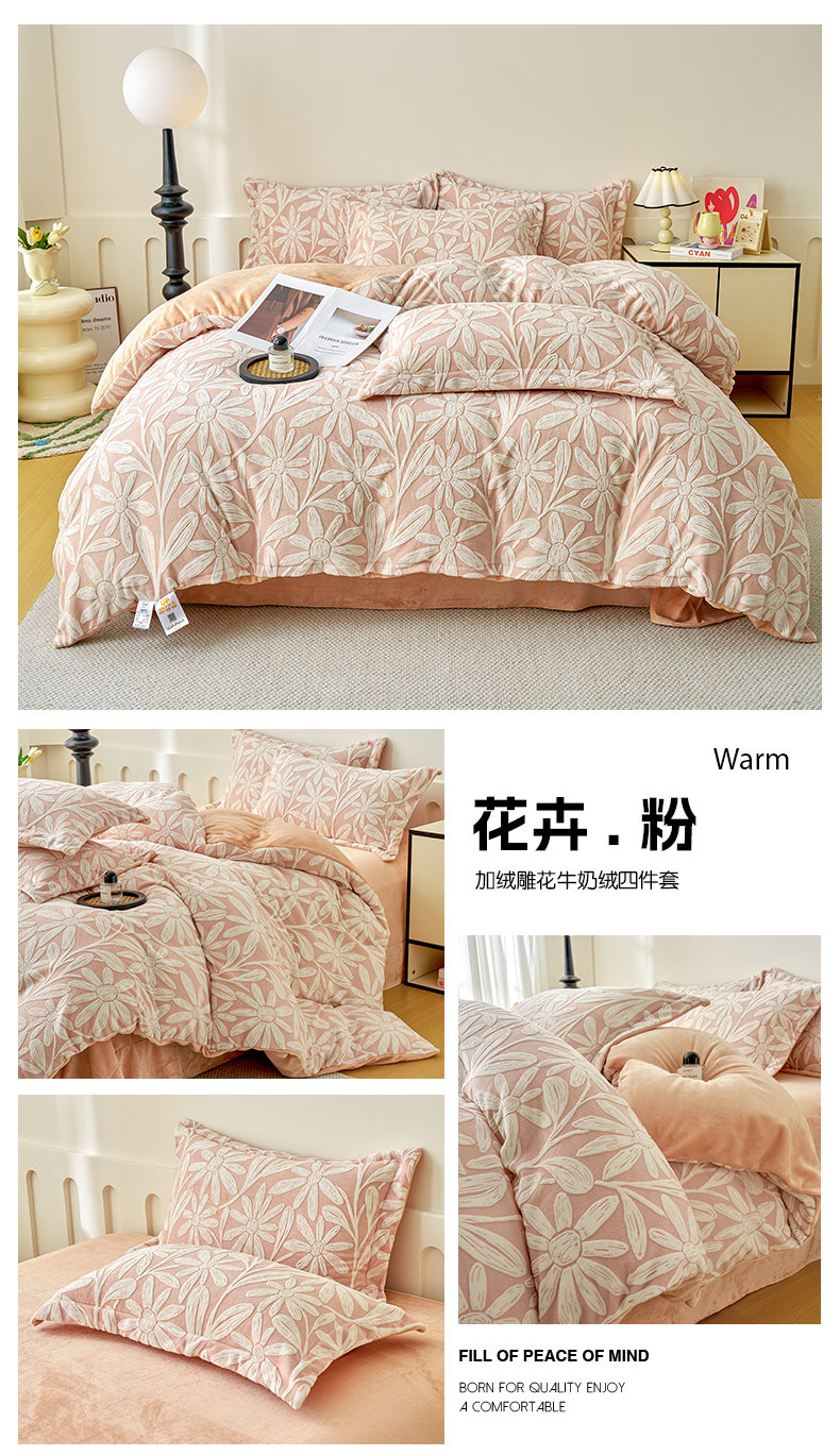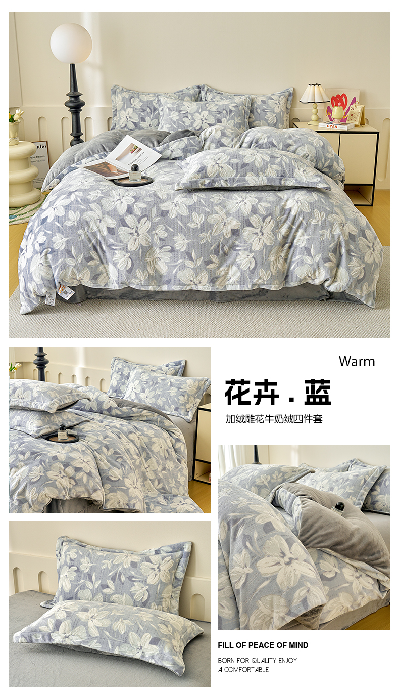 (总)贝诗梦 2025新款高克重230克5D雕花牛奶绒四件套,格调灰,格调咖,花卉粉,花卉咖,花卉蓝,花卉绿,花卉青,浪漫橙,浪漫蓝,柳叶青,生活橙,时尚咖